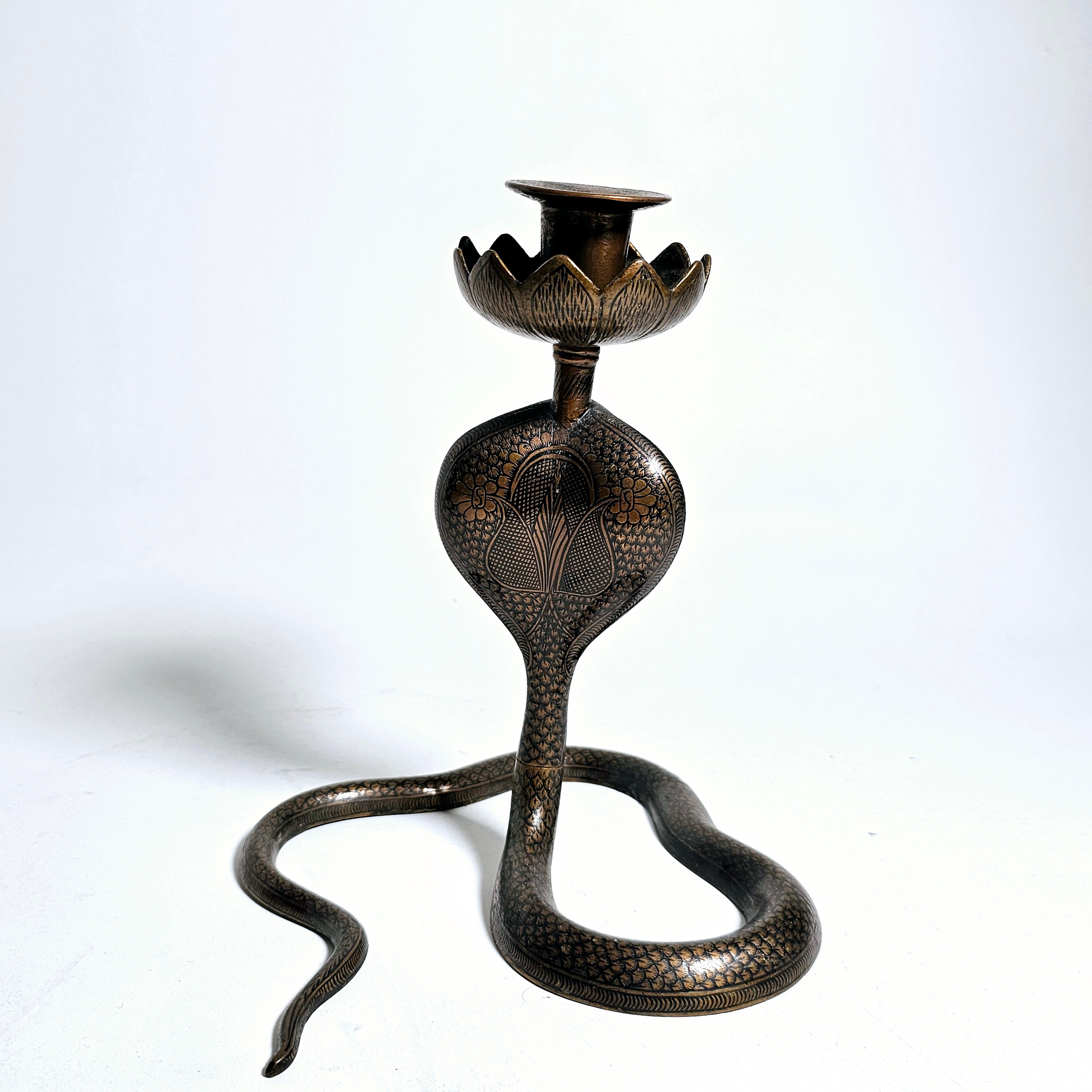4329080. PAIR OF BRONZE CANDLESTICKS SHAPED LIKE A COBRA.