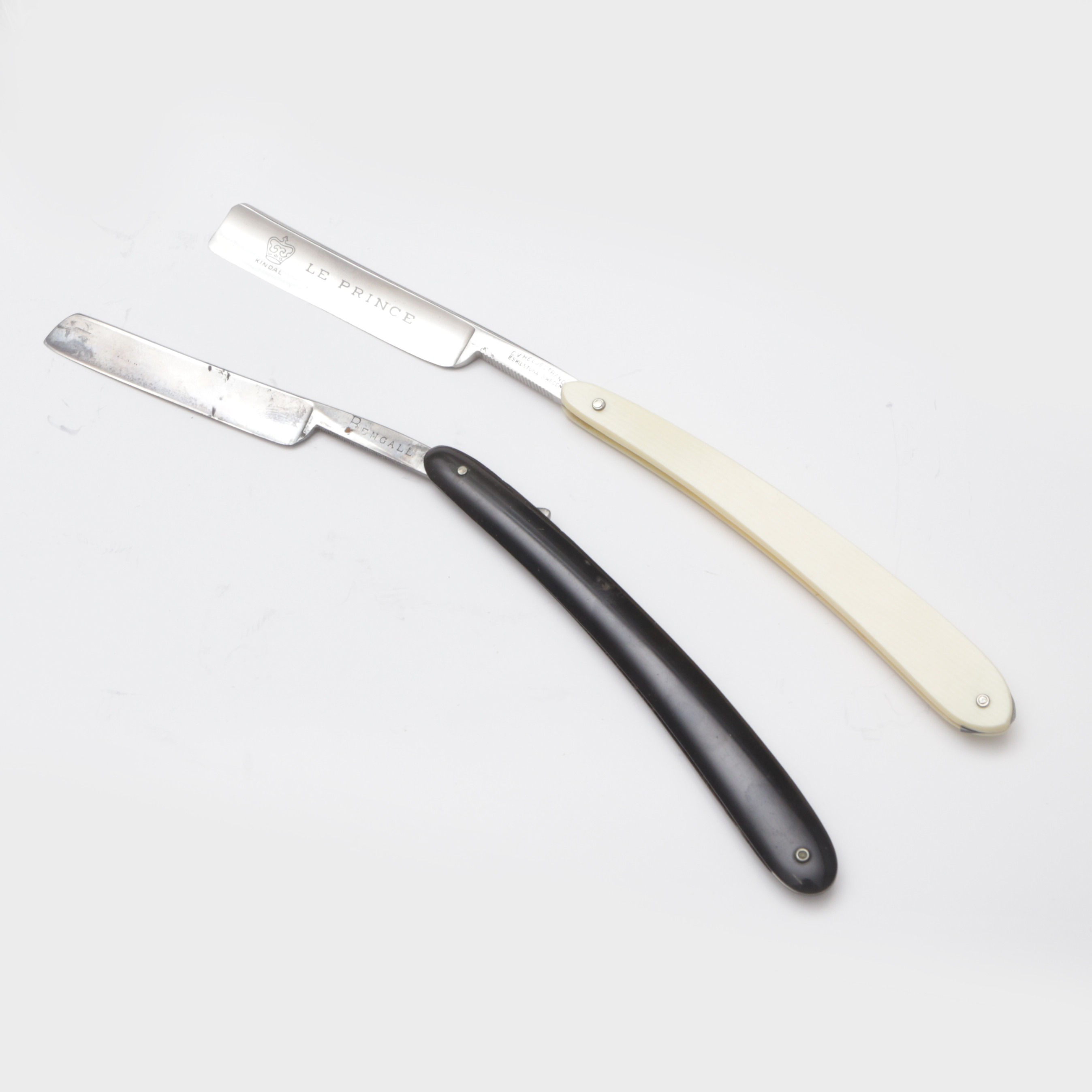 4329151. RAZORS 2 pcs, BOXES 2 pcs, wood/metal.