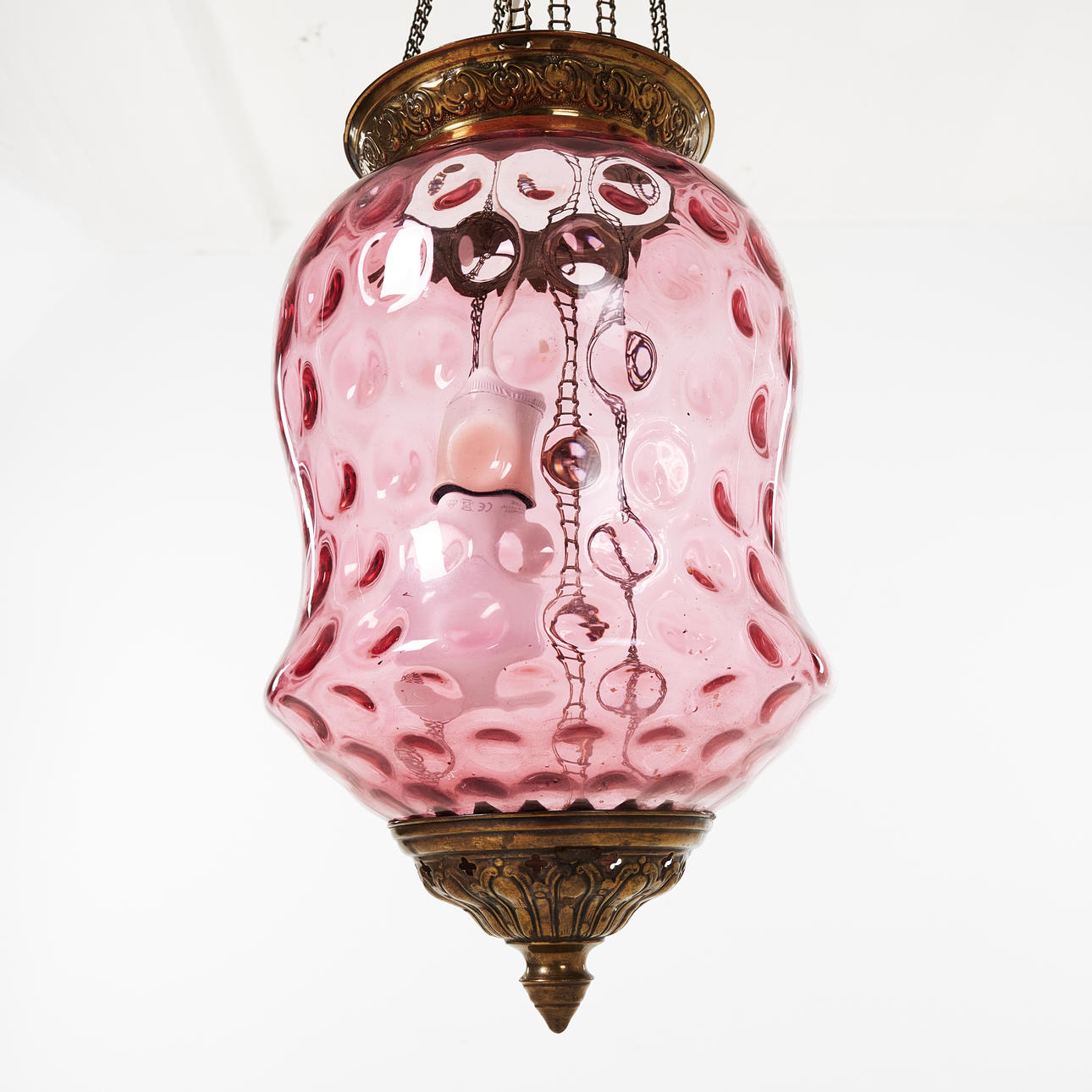 Pink glass, with brass, height of the ampel approx. 33, diameter 23 cm.