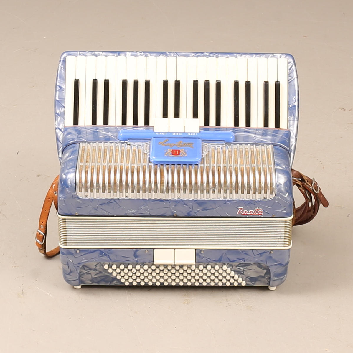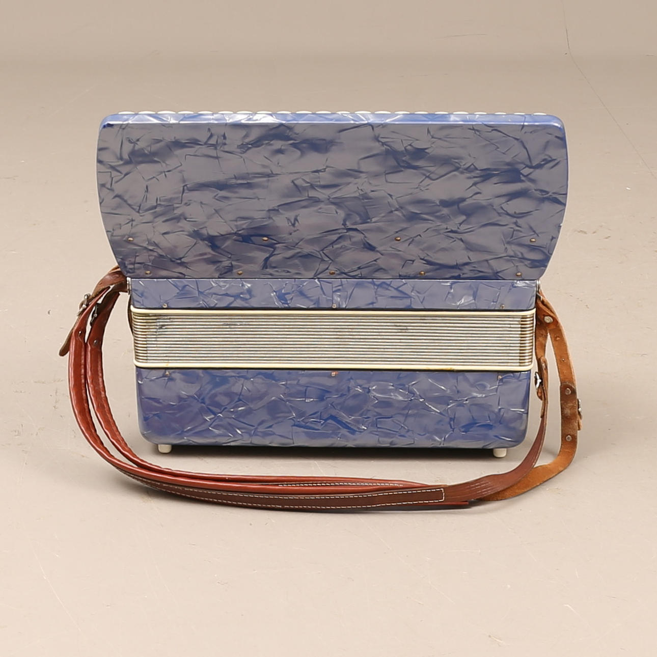 Piano accordion. Approximately 41 x 48 x 29 cm.