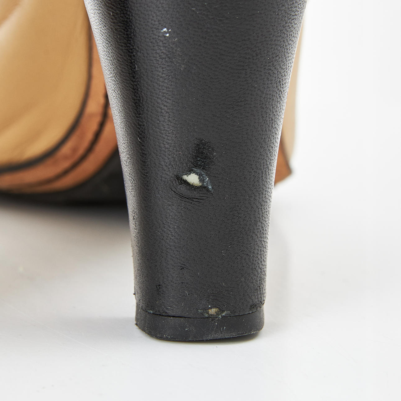 Normal wear and tear, marks of which one larger on heel, underside with moisture, slightly released sole.