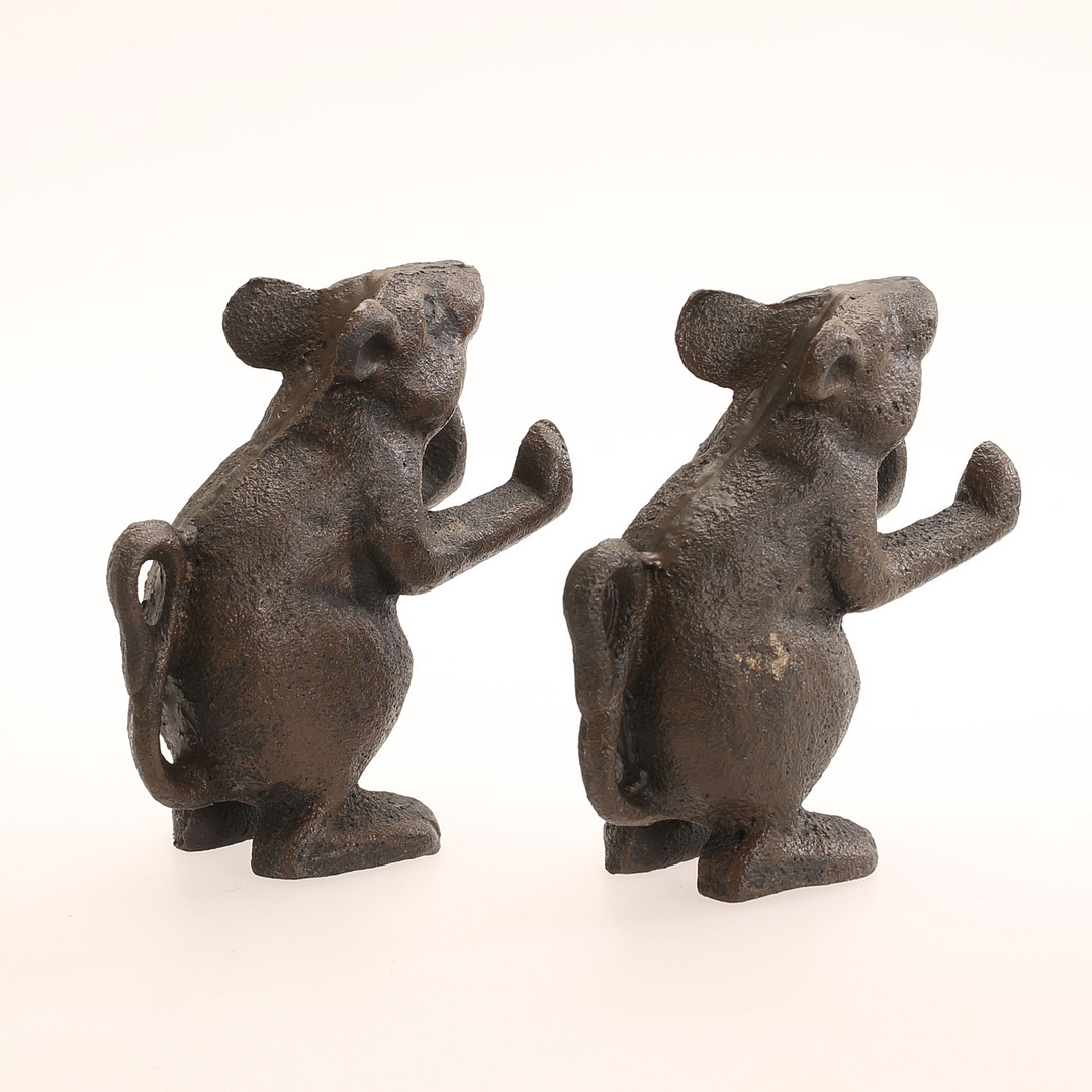 4330251. BOOKENDS, 2 pieces, mice, cast iron, contemporary.