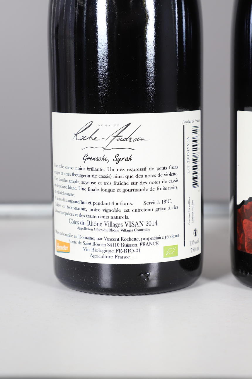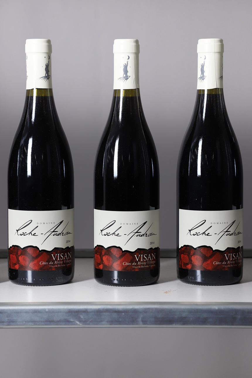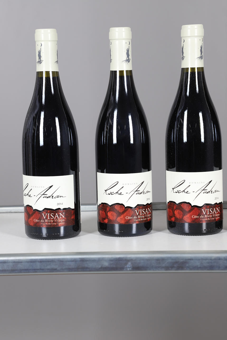 7 bottles of Domaine Roche Audran Visan 2014, 750ml and in the original cardboard box. Box 50cms by 31cms