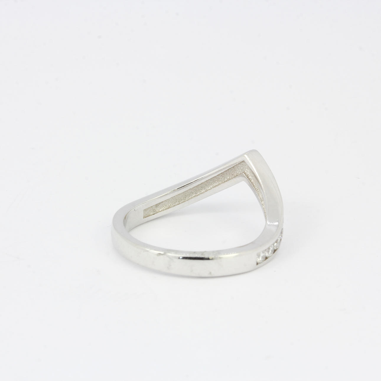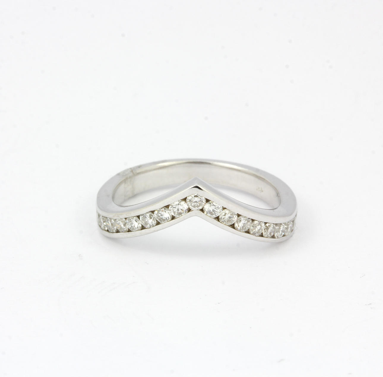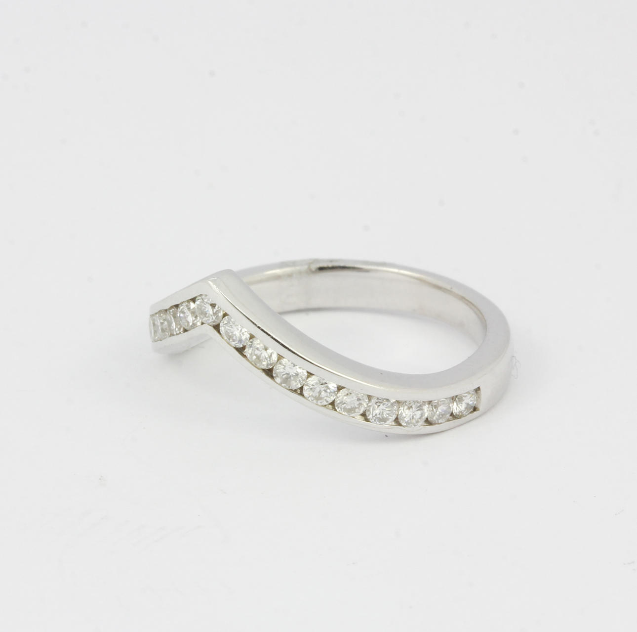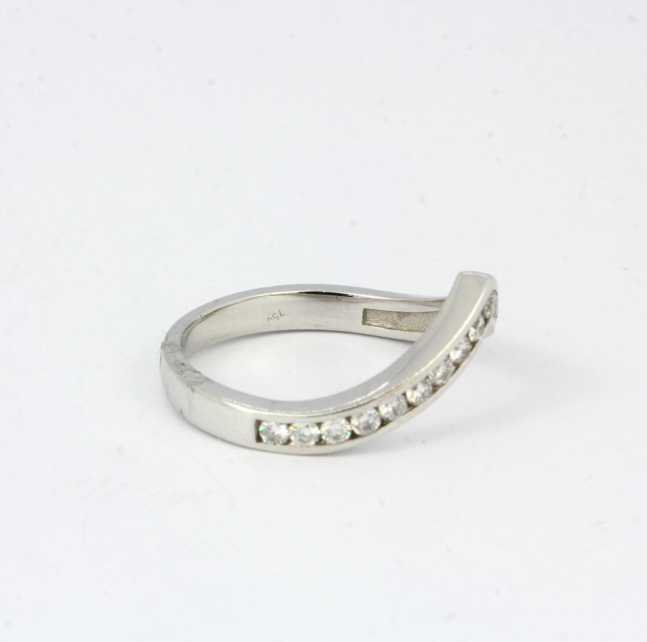 An 18ct white gold diamond set wishbone half eternity ring. Dia. 0.66ct total. UK ring size: M.