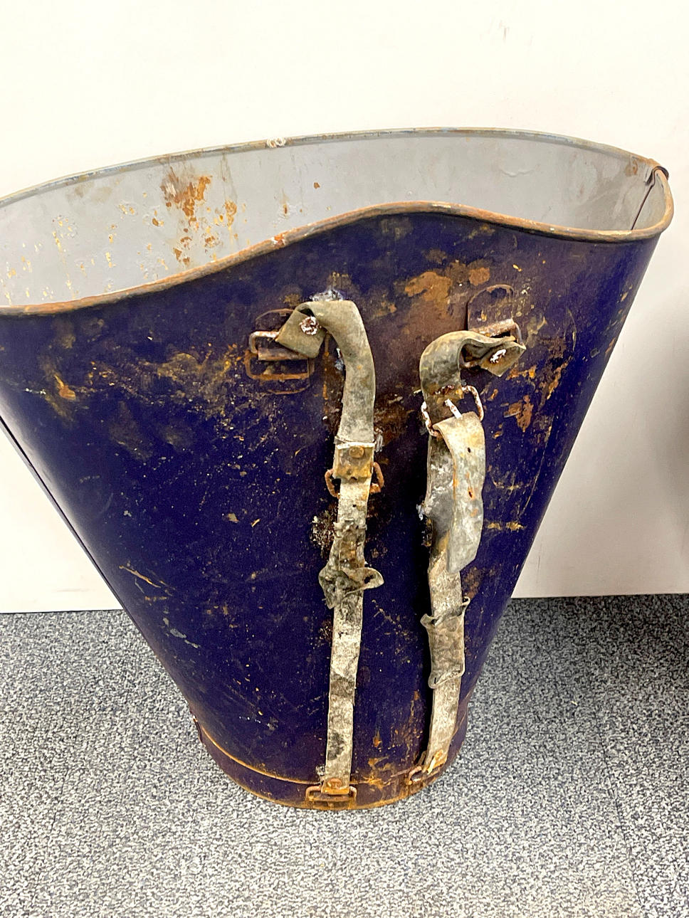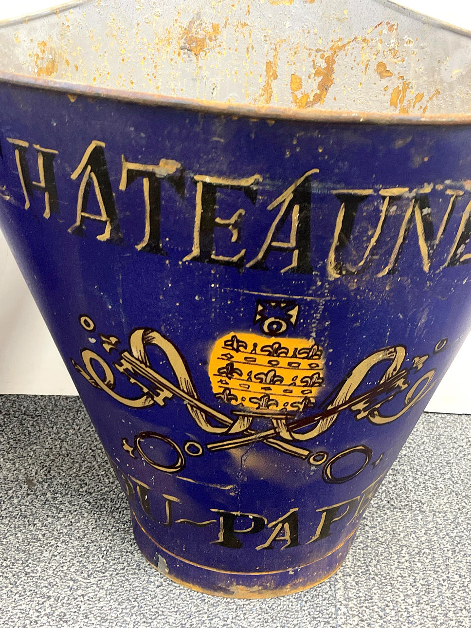 A pair of large advertising metal grape gathering hoppers, W. 59cm, H. 59cm.