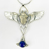 A large heavy sterling silver winged beetle pendant and chain set with a lapis lazuli drop. W. 9cms. L. 9.5cms.