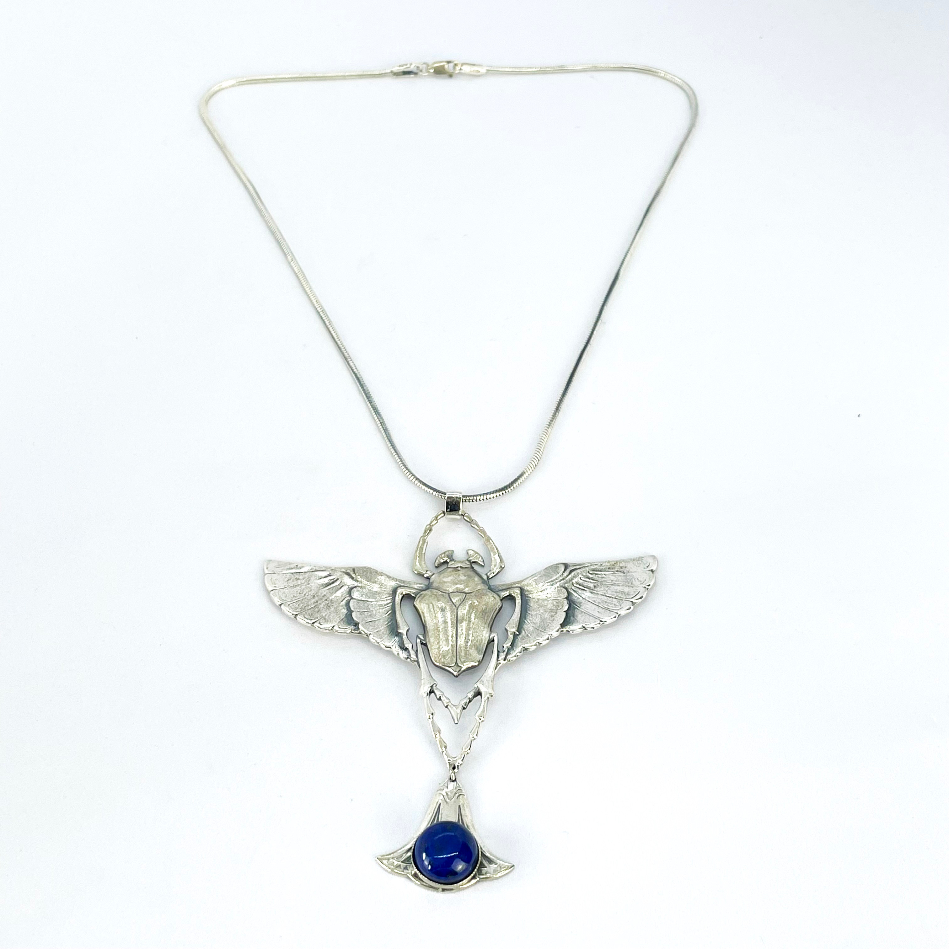 4330935. SILVER BEETLE PENDANT AND CHAIN.