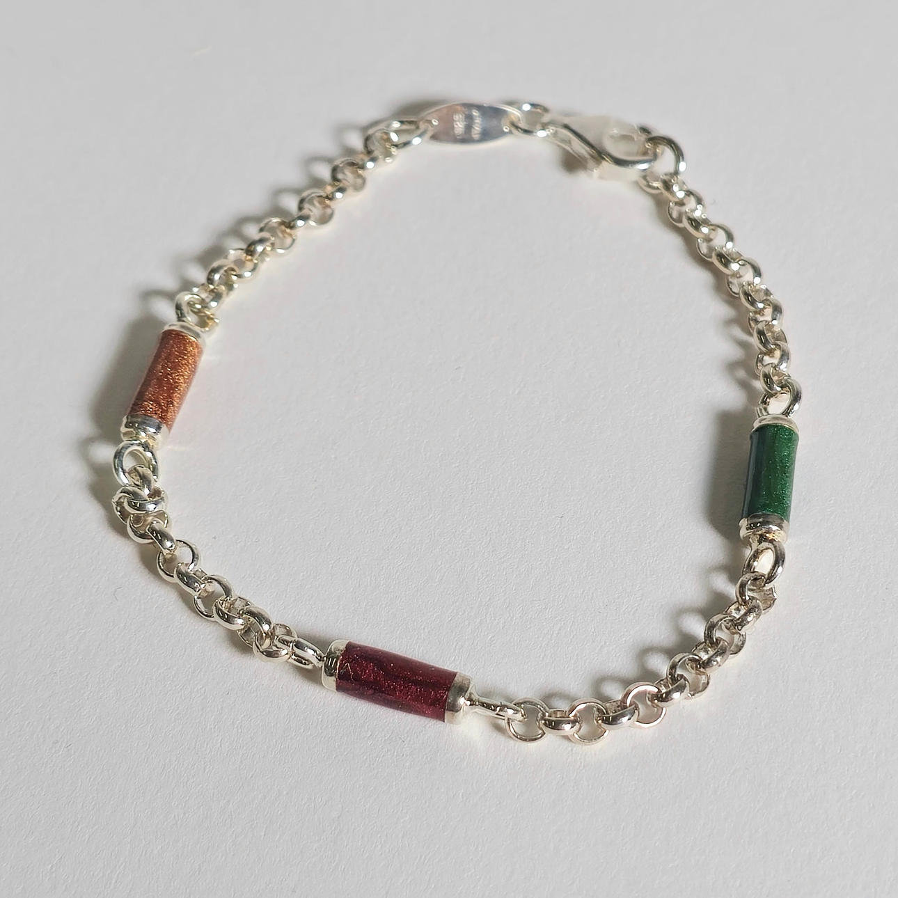 4330996. SILVER BRACELET DECORATED WITH ENAMELED CYLINDERS.
