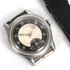 Defective assignment mechanism, monogram engraving on back case, faded text on dial, wear and tear. Later, a bracelet was added.