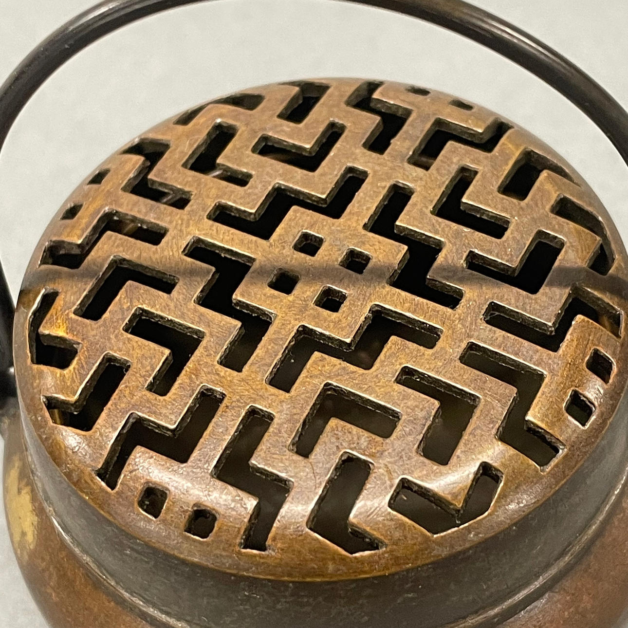 A small Chinese bronze censer with gilt splash decoration, Dia. 8cm.