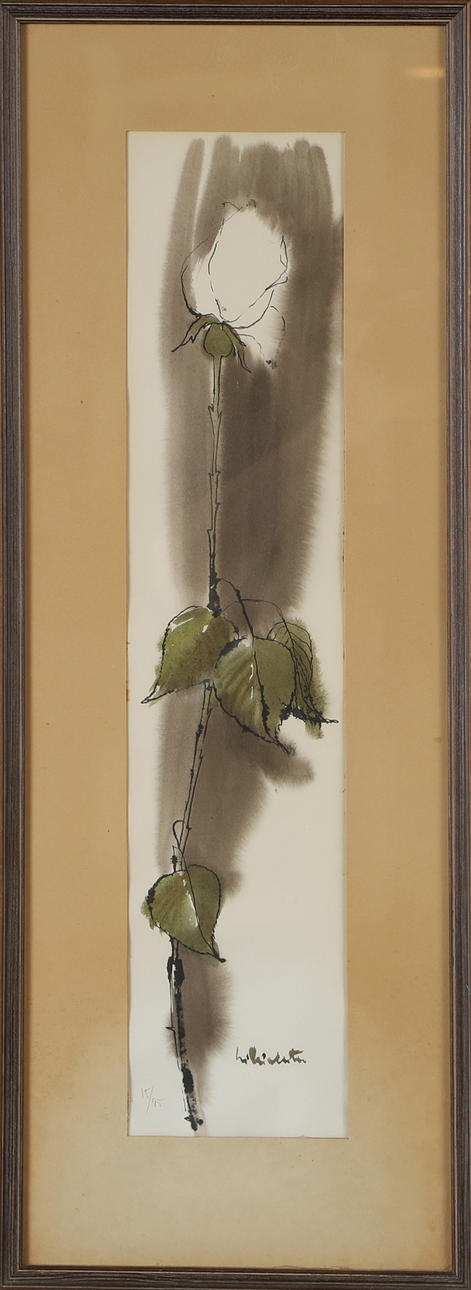 4331530. SILVIA LEITU. White rose, lithograph in colours, signed.
