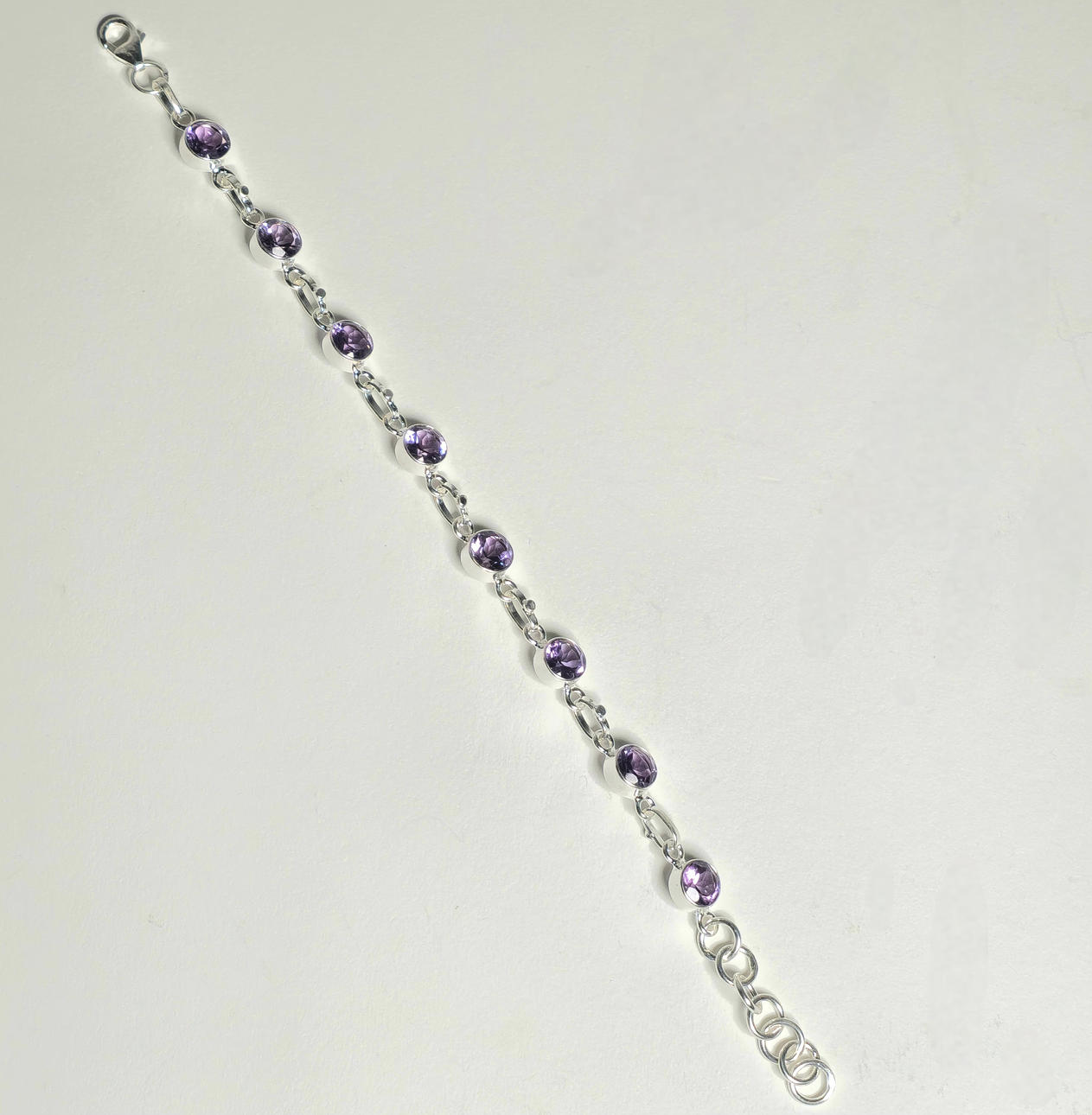 SILVER BRACELET WITH NATURAL AMETHYST.