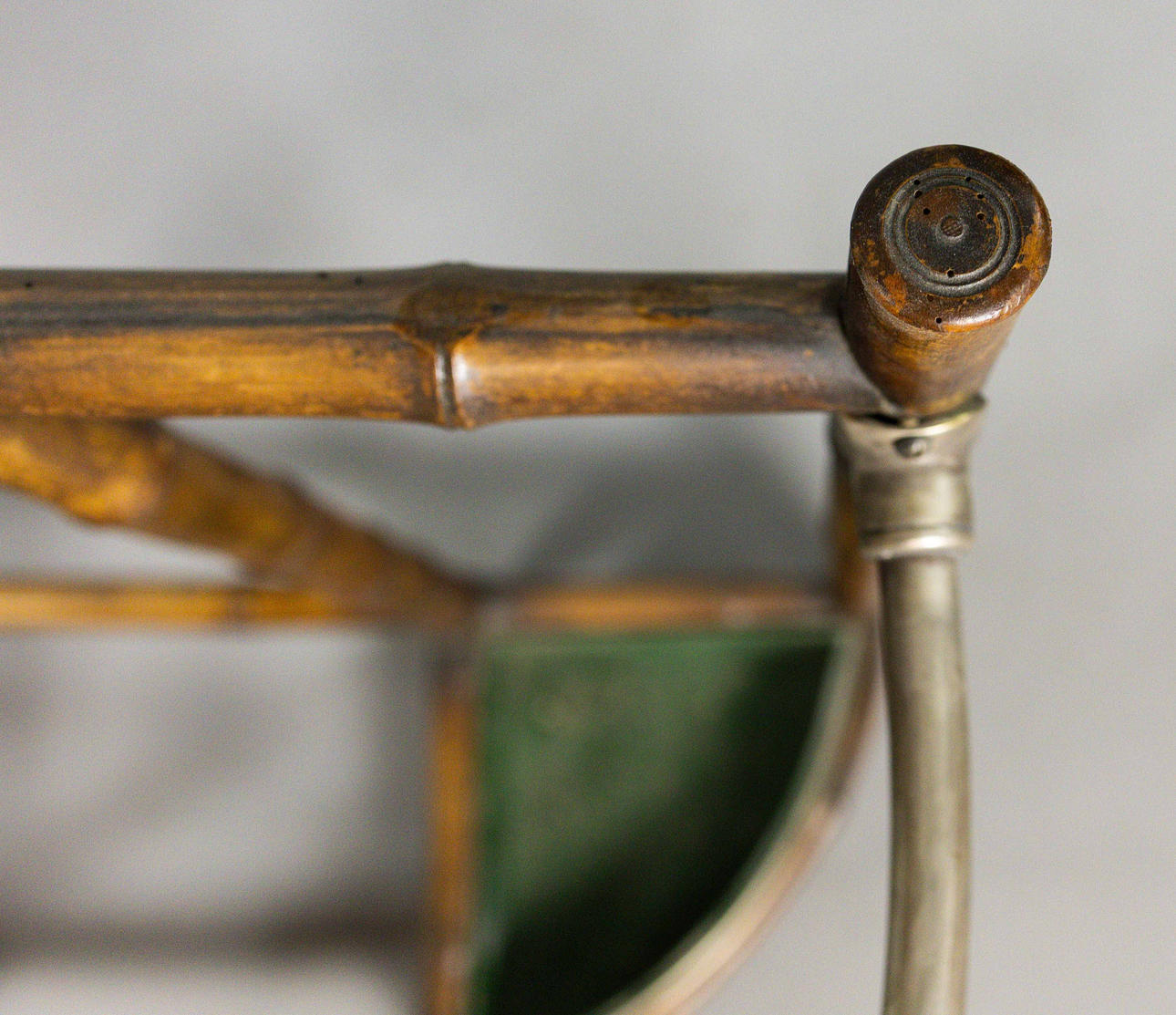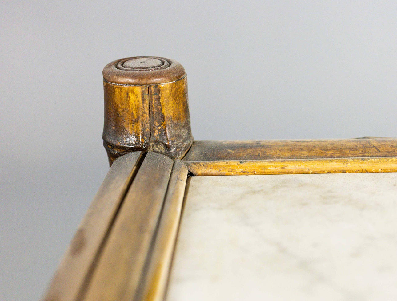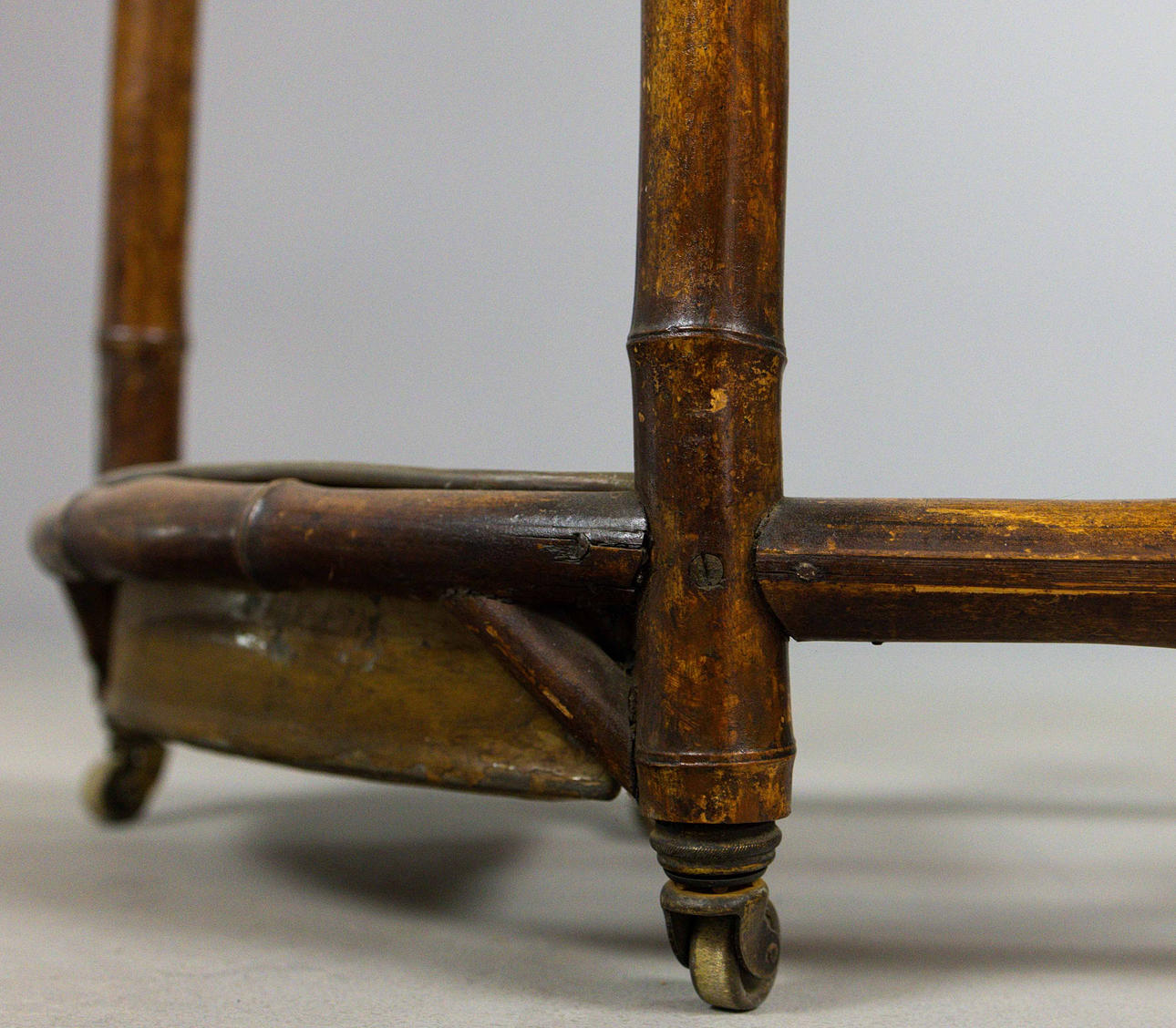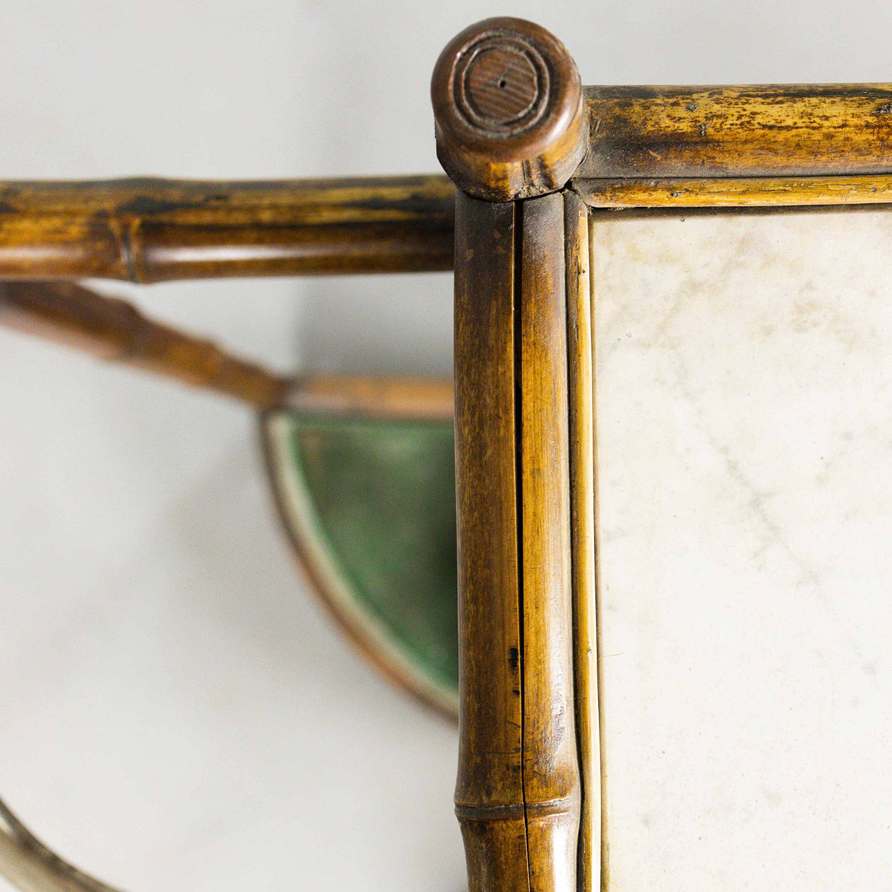 19th century bamboo framed and silvered metal with drawer and marble centre, 92cm W x 97cm H x 33cm D.