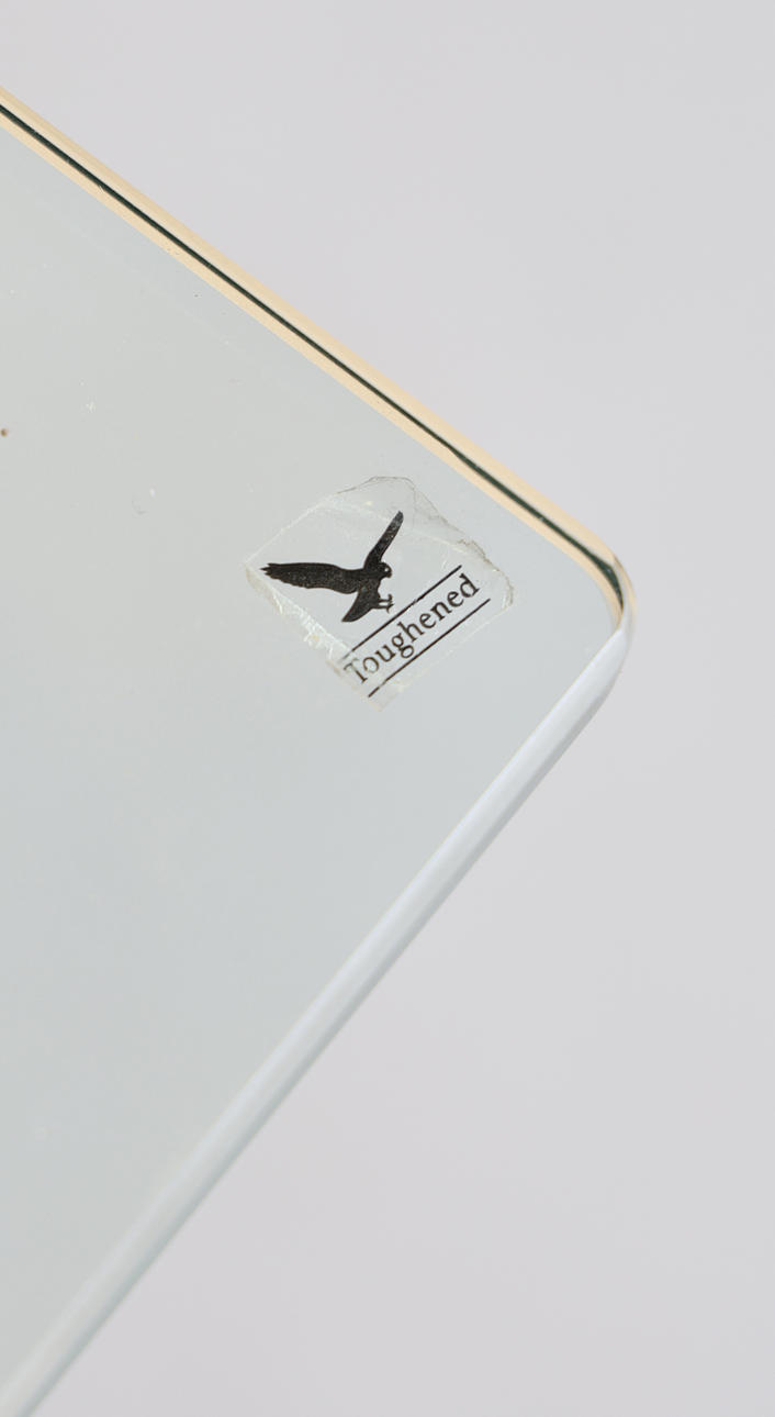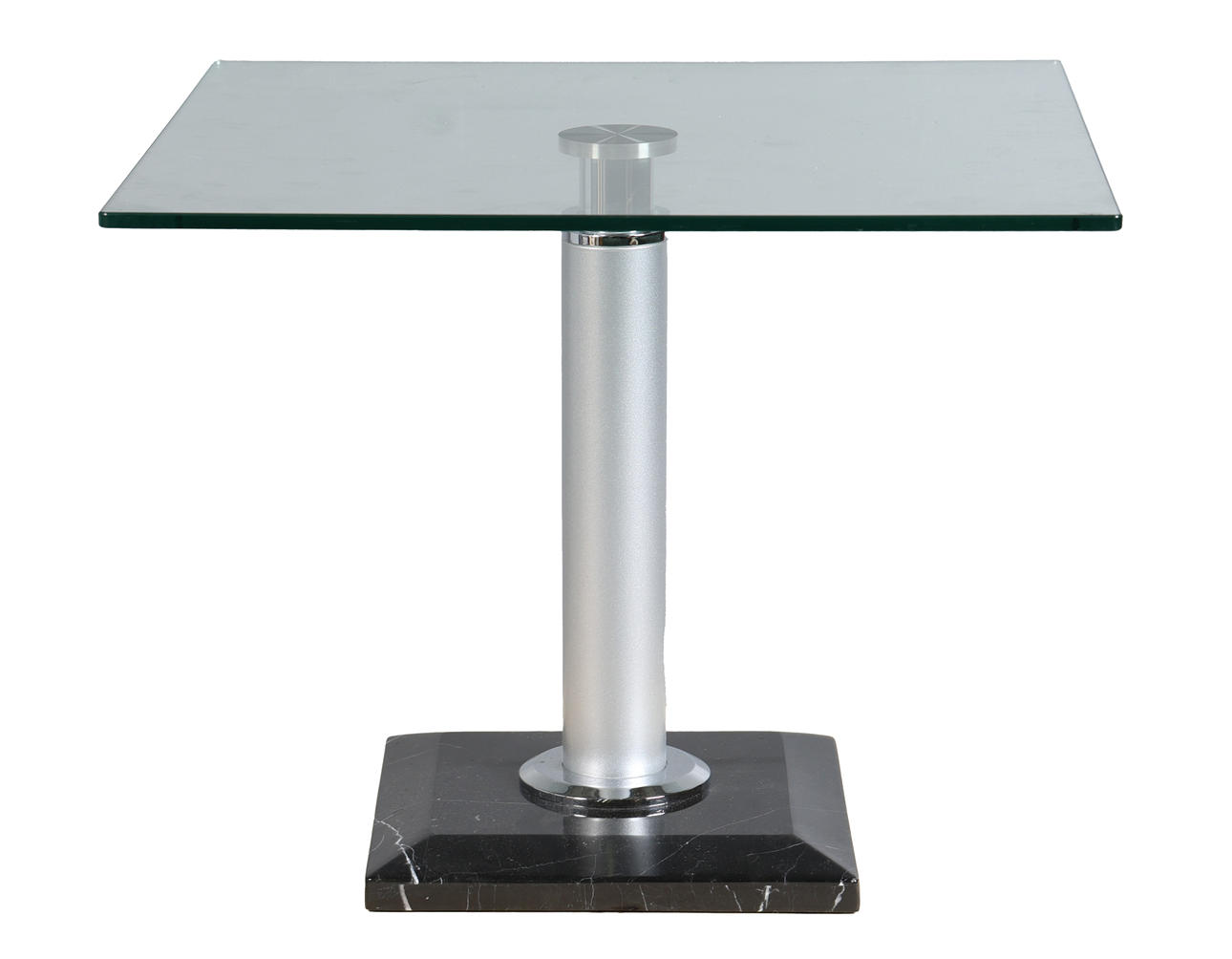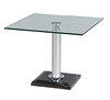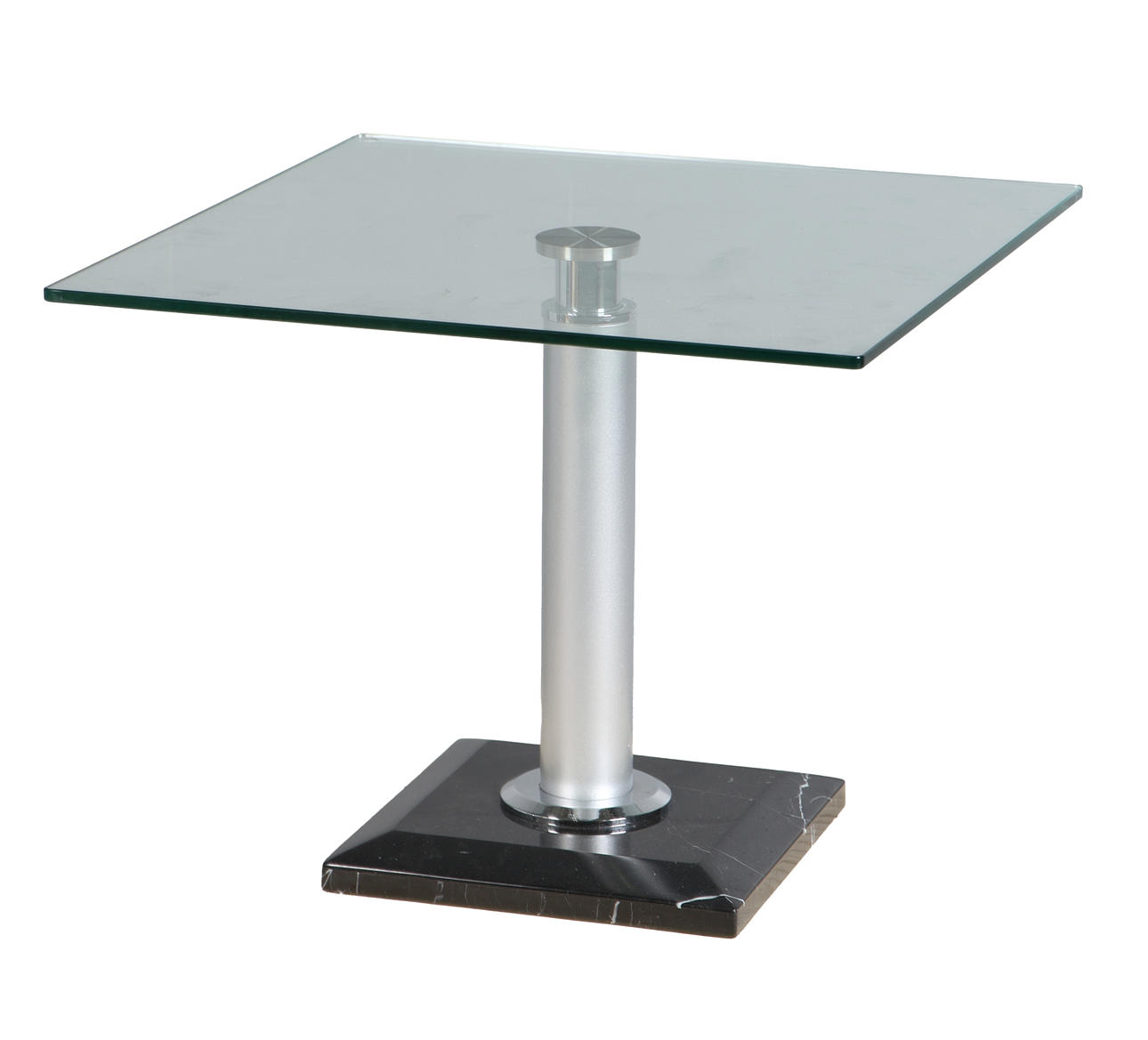The circa 1970's/ 80's side table by Artedi, the glass top above a black marble and chromed cylindrical base, 48cm height, top measures 60.5cm x 60.5cm.