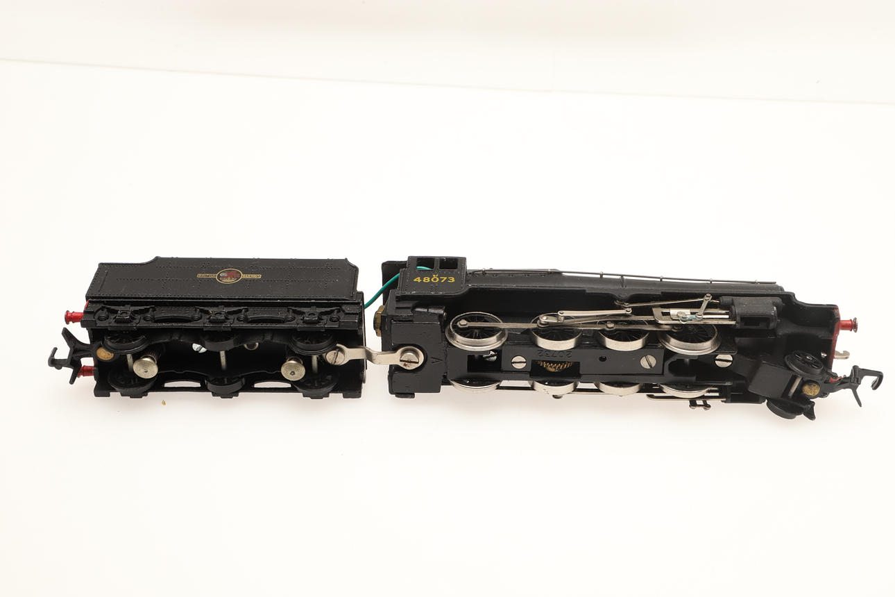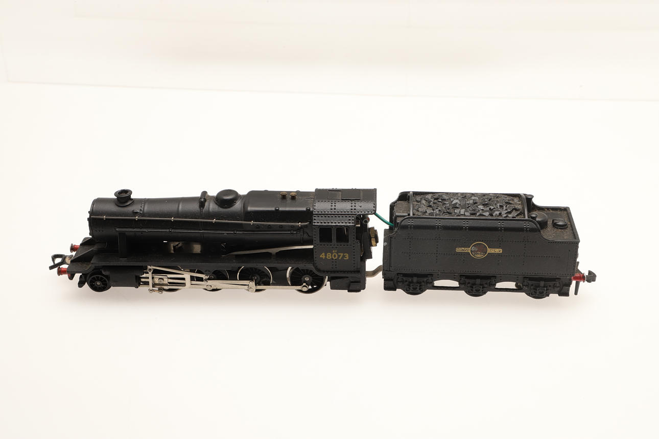 Model No 2224, 48073 Class SF locomotive and tender, 3 rail, boxed. Also with five boxed Wrenn wagons. (6).