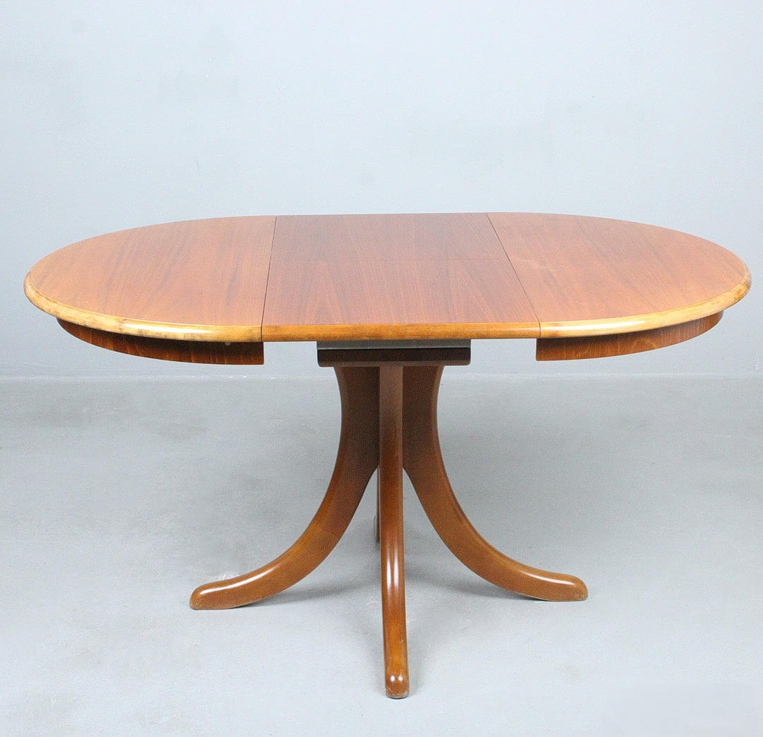 Casala, round dining table, expandable with an internal plate, with manufacturer's label on the underside,
