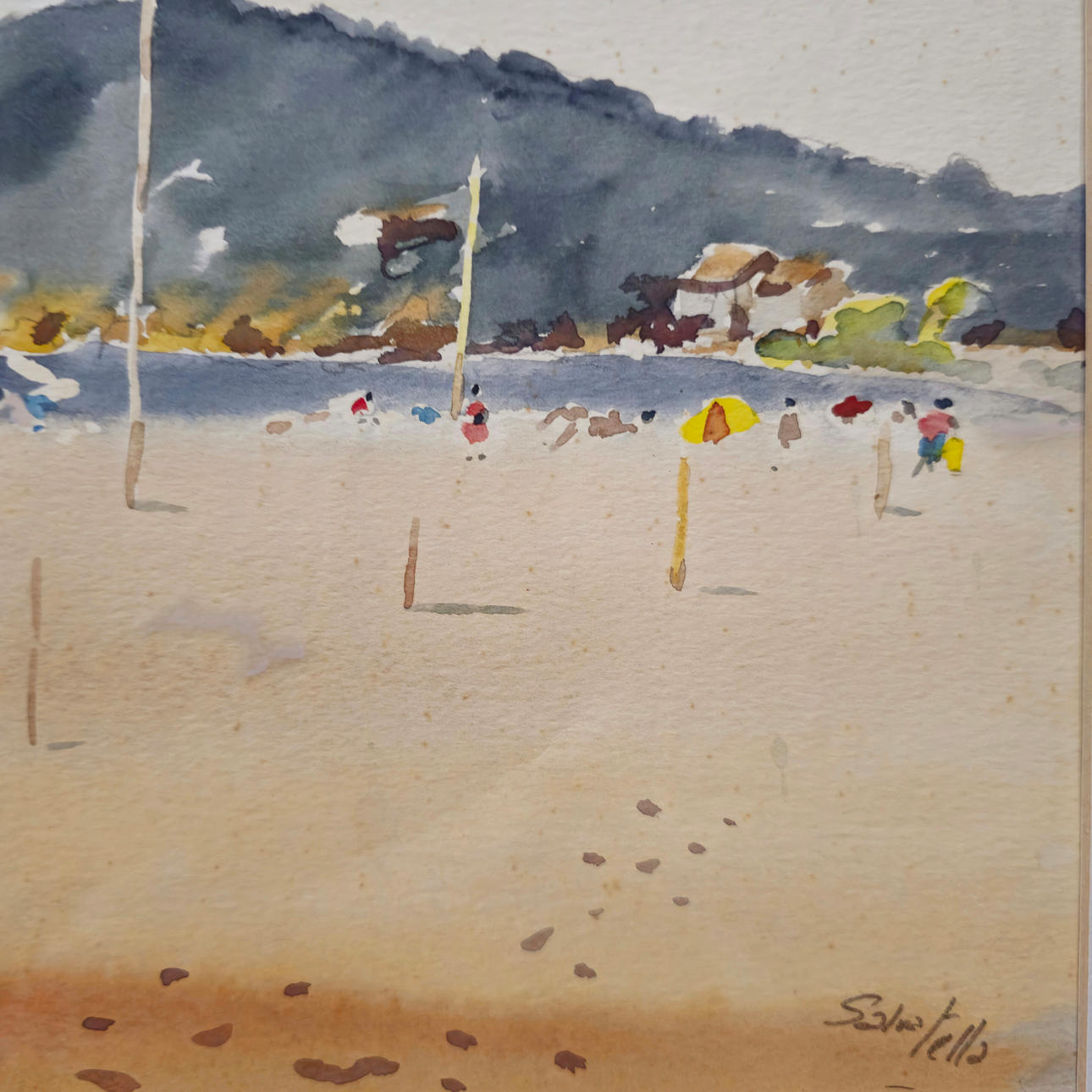 BEACH. WATERCOLOR ON PAPER. SIGNED SALVATELLA.