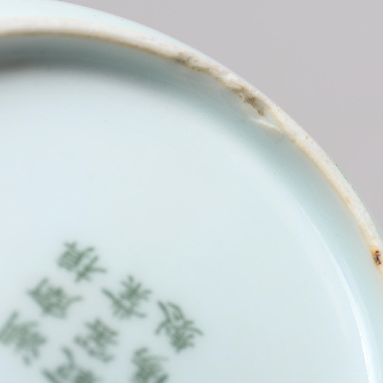 Height with cover 13,5 cm, length 16,5 cm, width 16,5 cm.