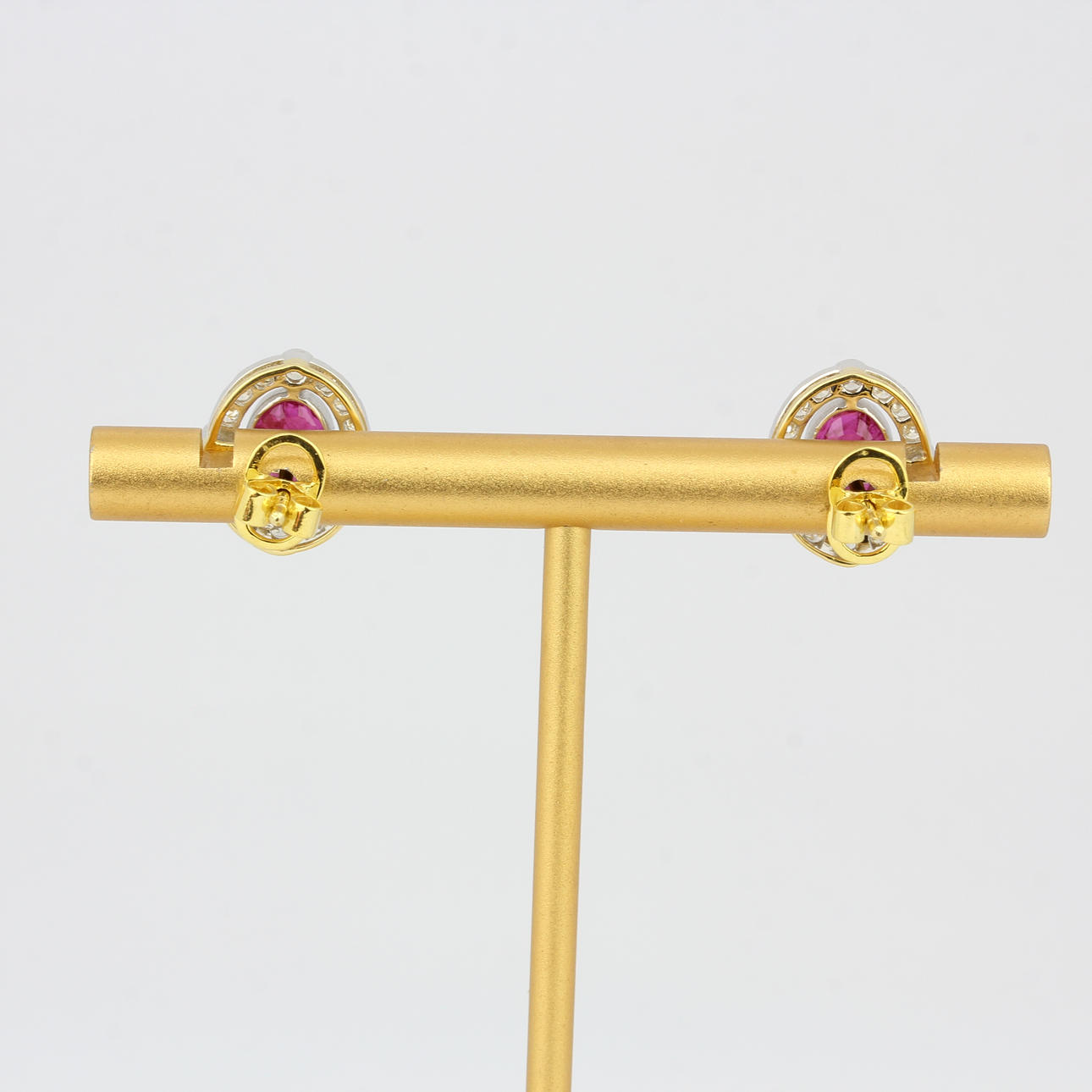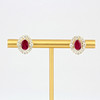 A pair of 18ct yellow gold earrings set with rubies surrounded by brilliant cut diamonds. L.13mm rubies 3.02ct. Diamonds 0.58ct.