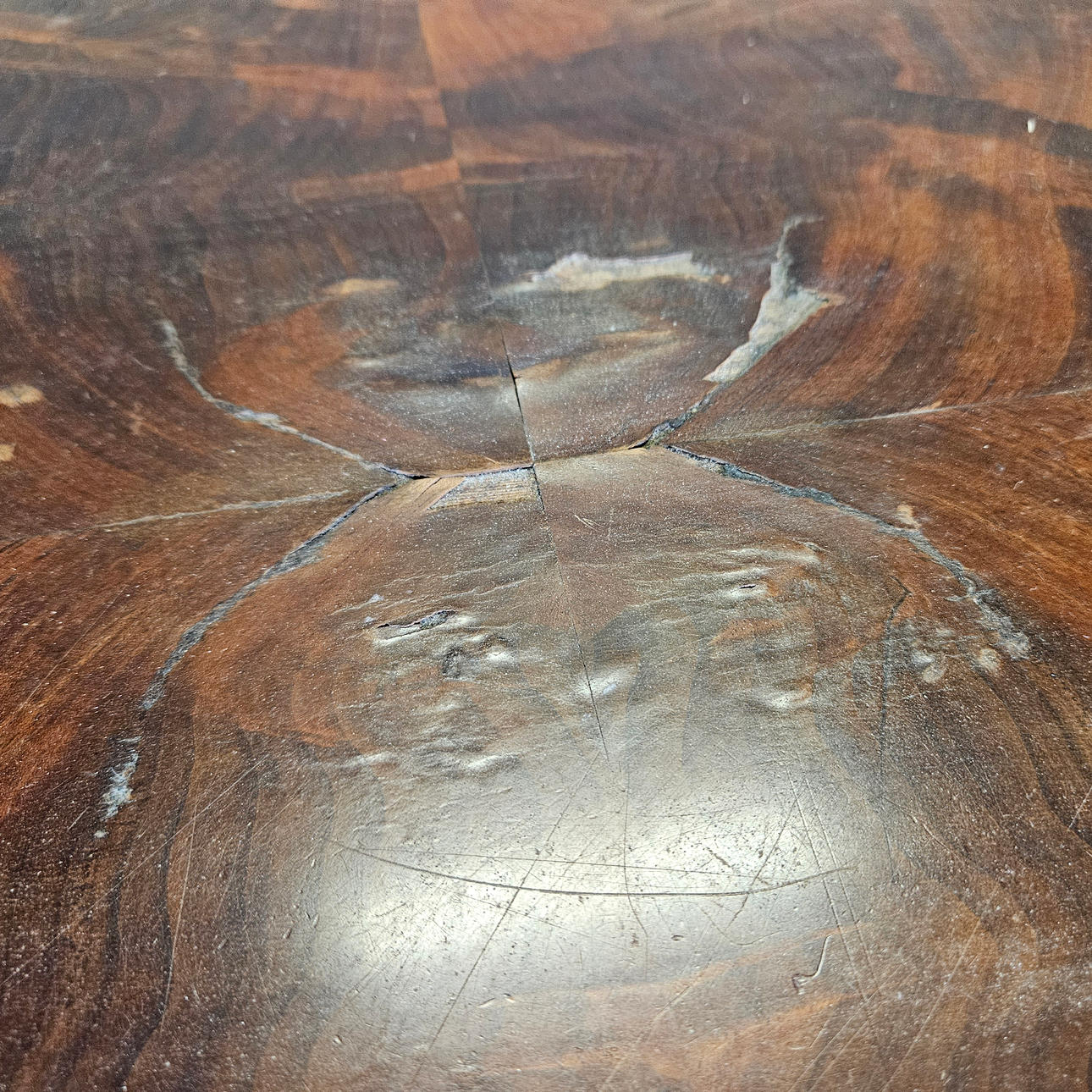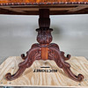 Hardwood, richly cut foot. Length approx. 157, width 102, height 74 cm.