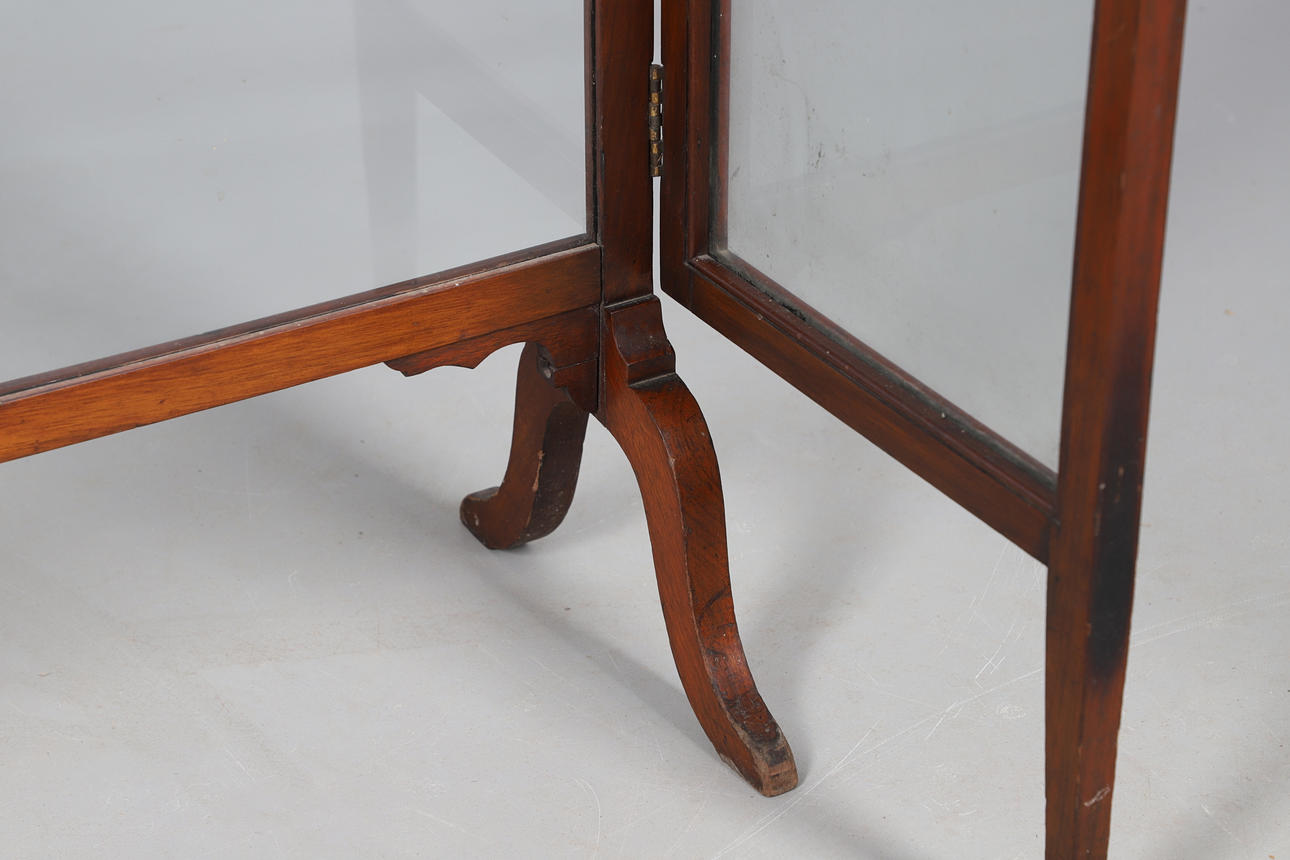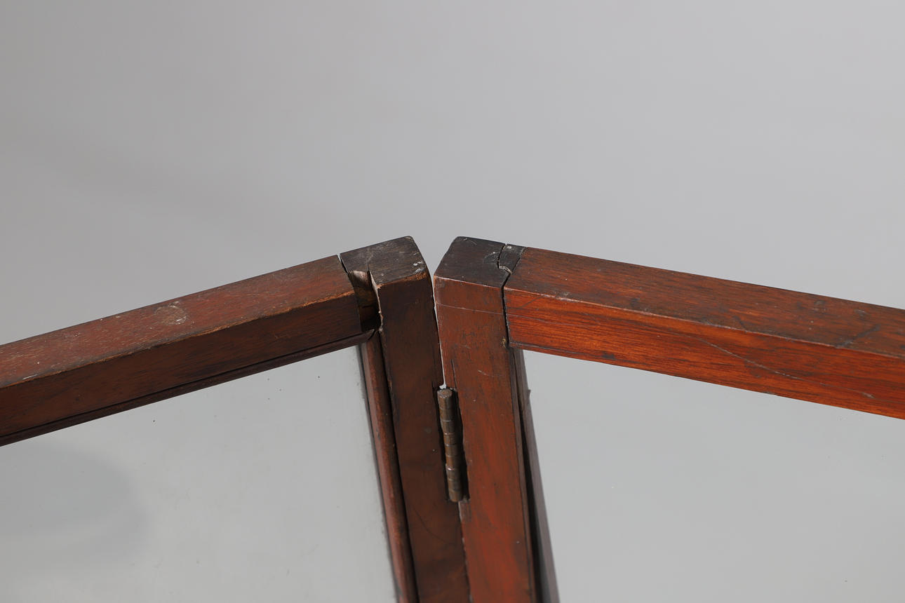4333007. A MAHOGANY THREE FOLD GLASS SCREEN.