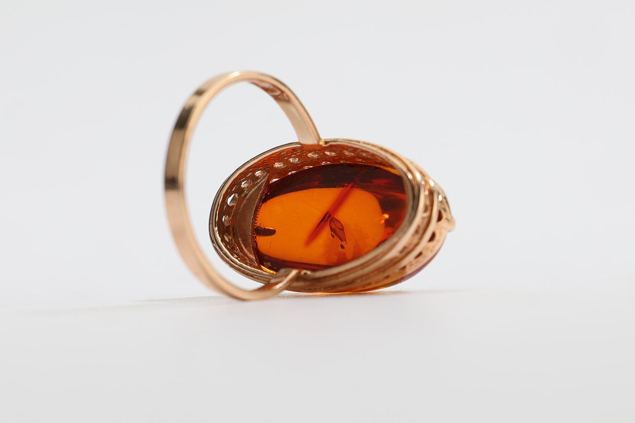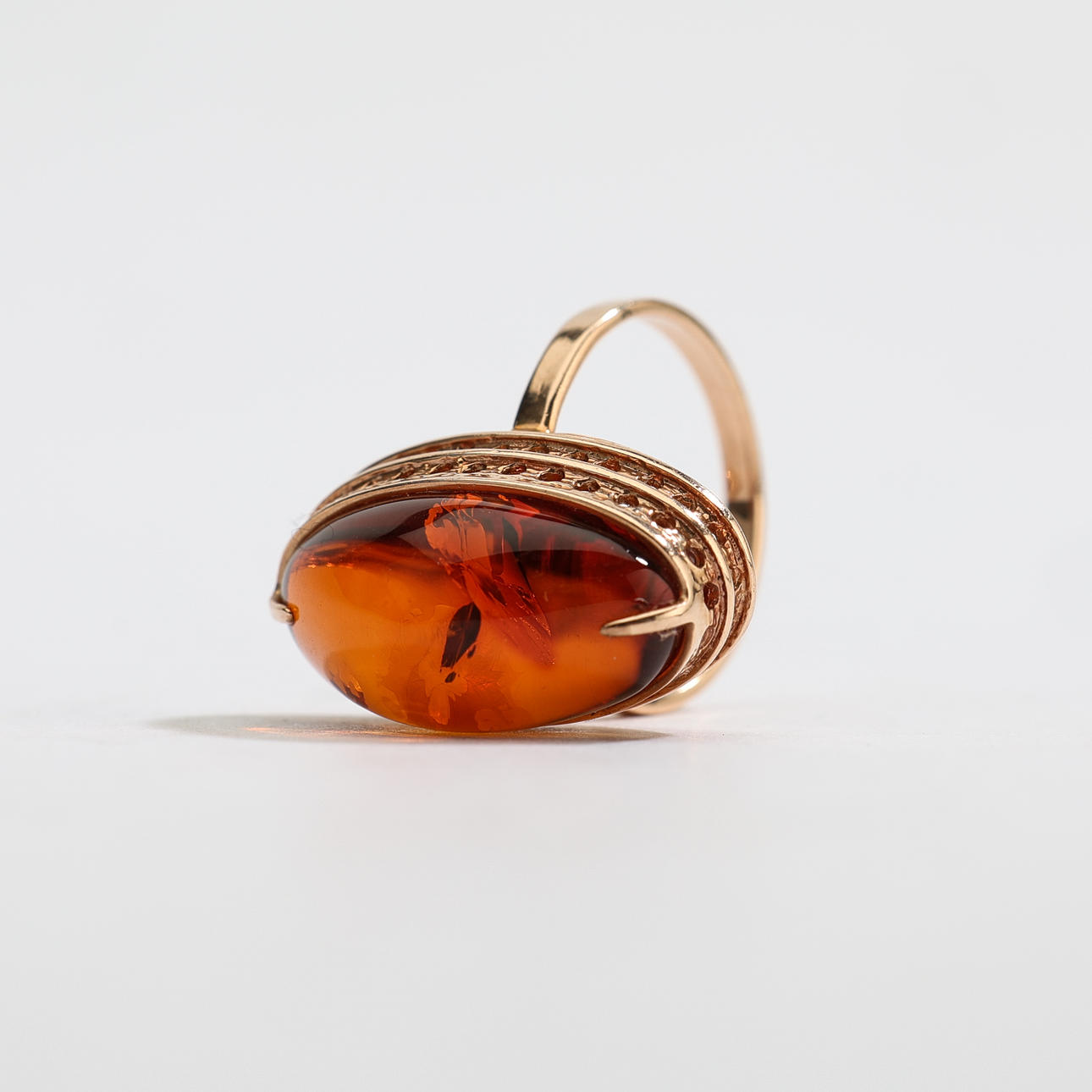4333069. RING, 14K rose gold with cabochon-cut amber.