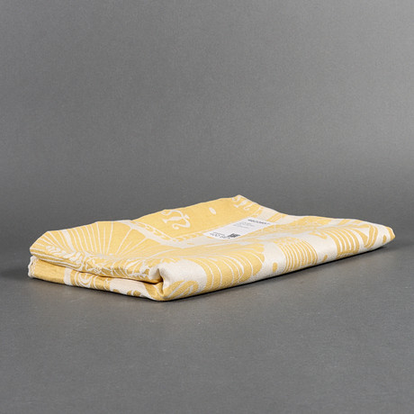 A tablecloth, linen damask, circa 1900, mirror decorated with winda, wide border repeating the mirror pattern, flanked by narrow bows with fleurons, embroidered monogram (SH).