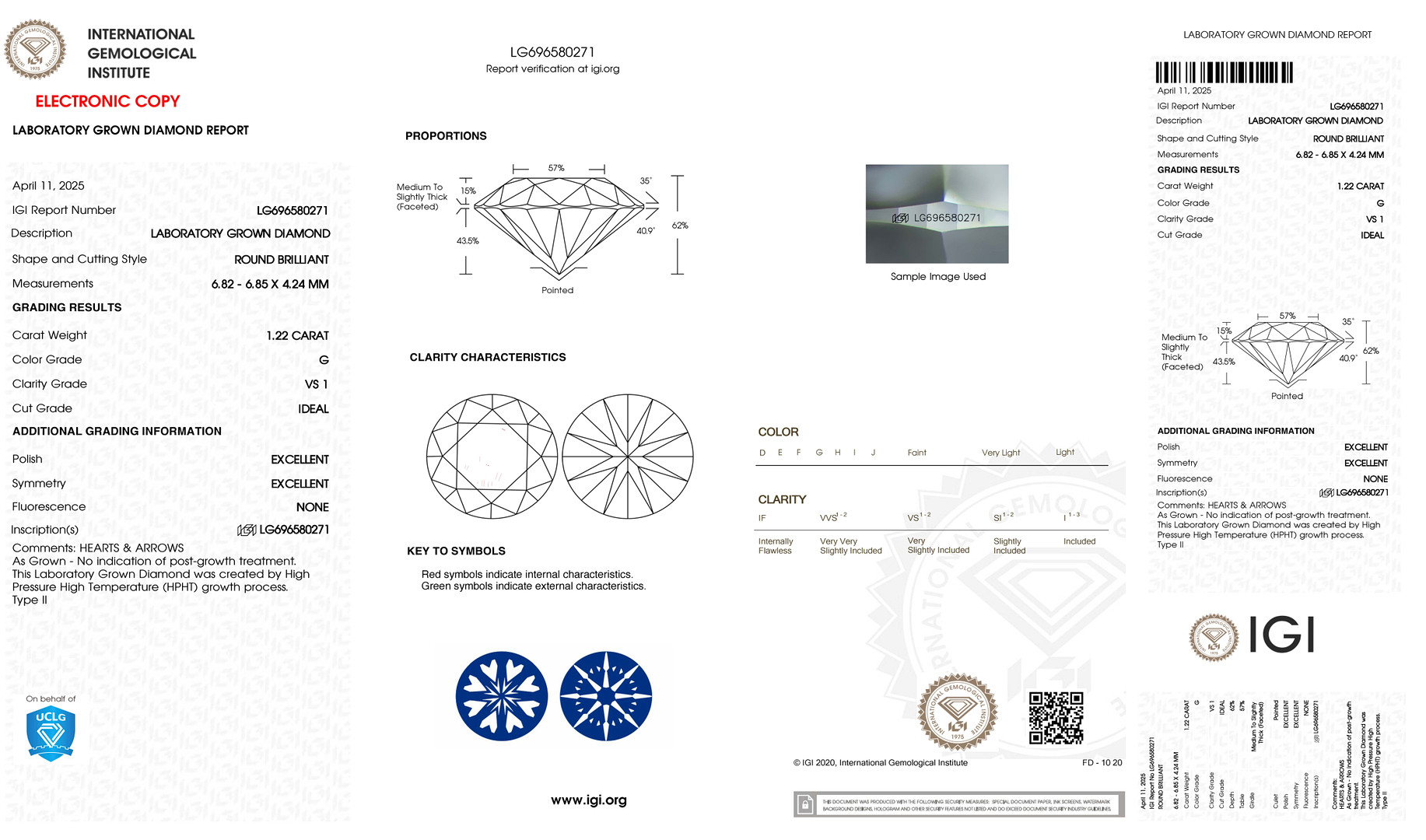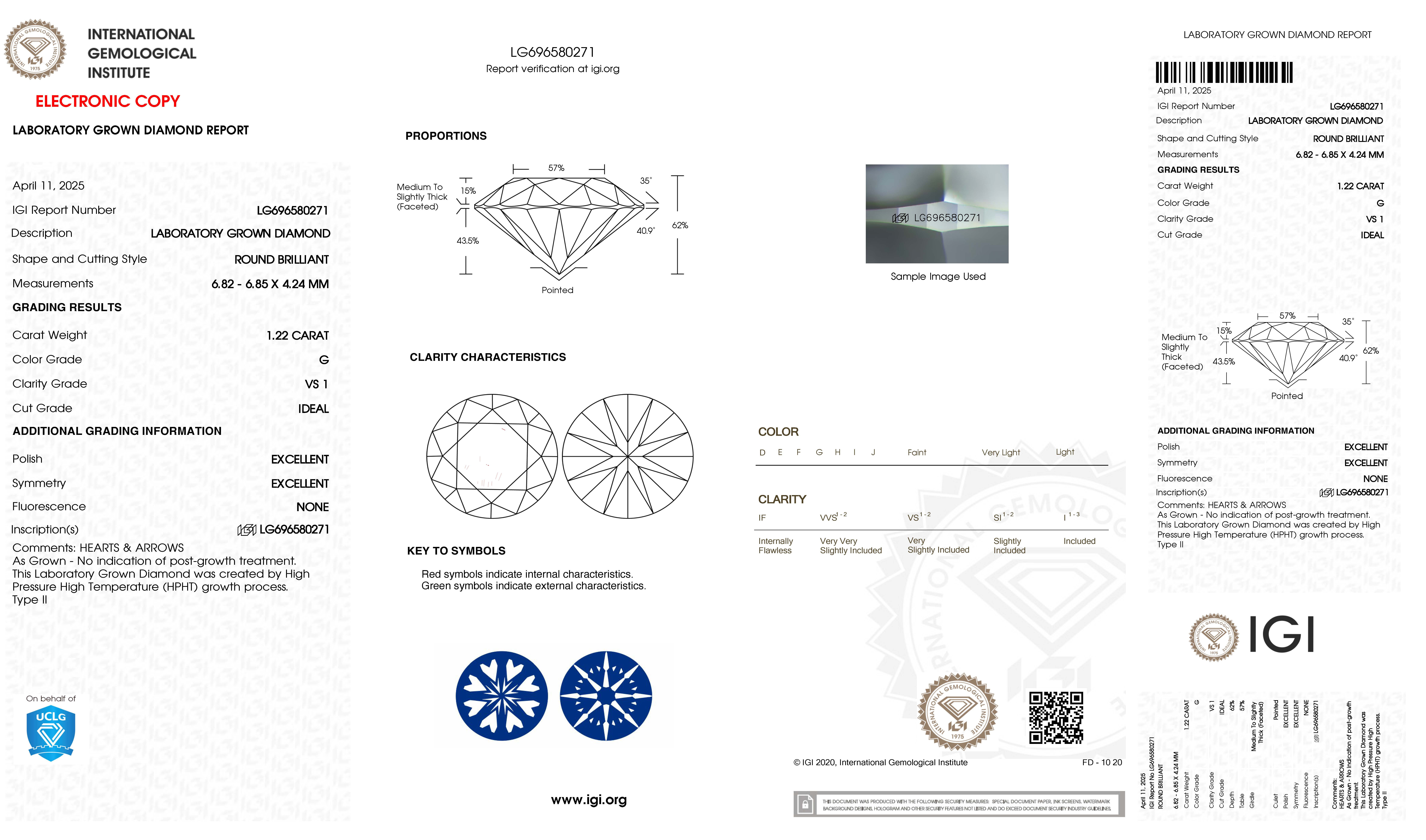 4333567. UNMOUNTED 1.22CT LAB GROWN DIAMOND.