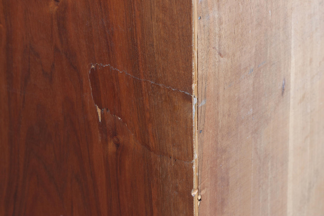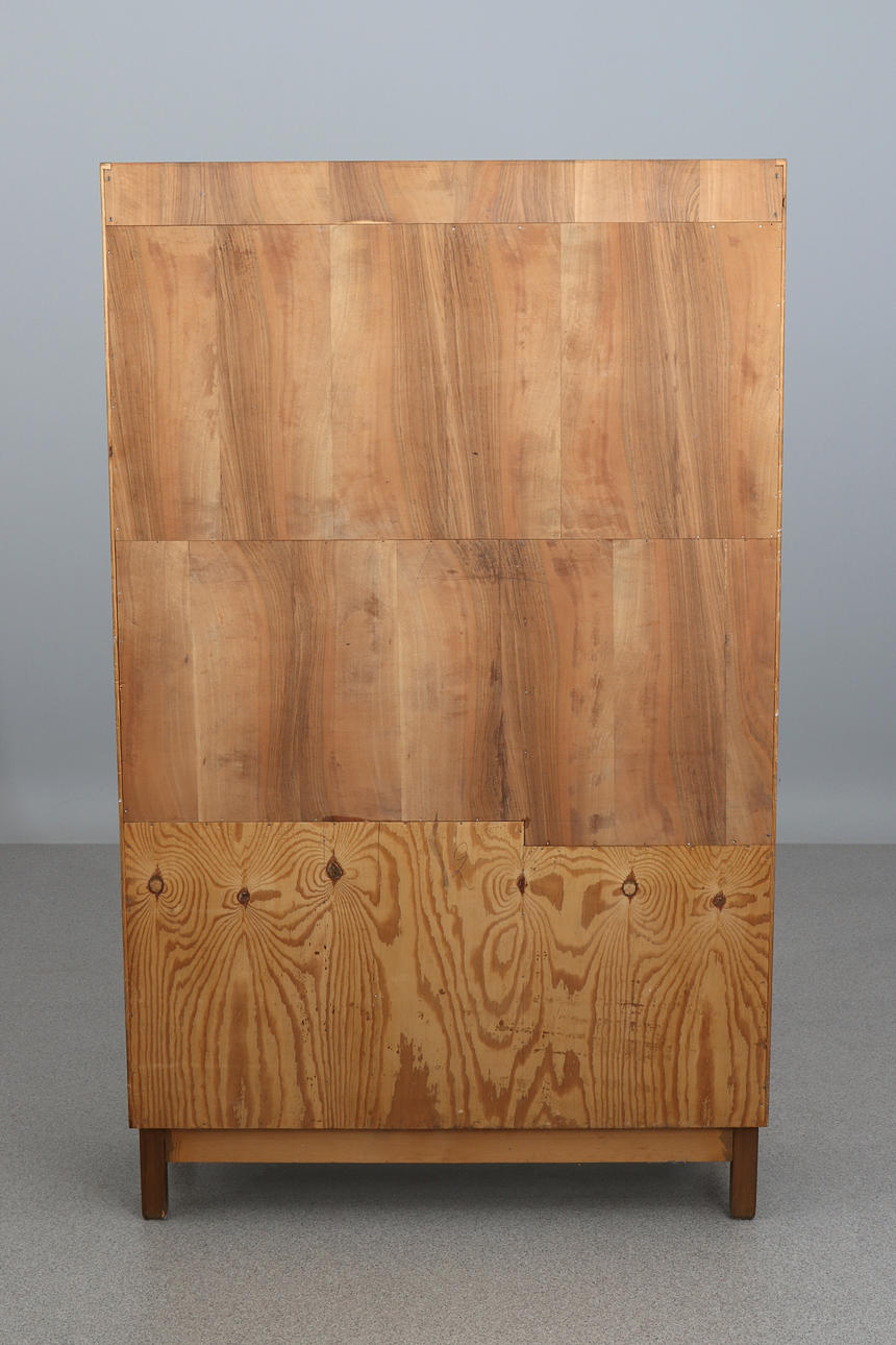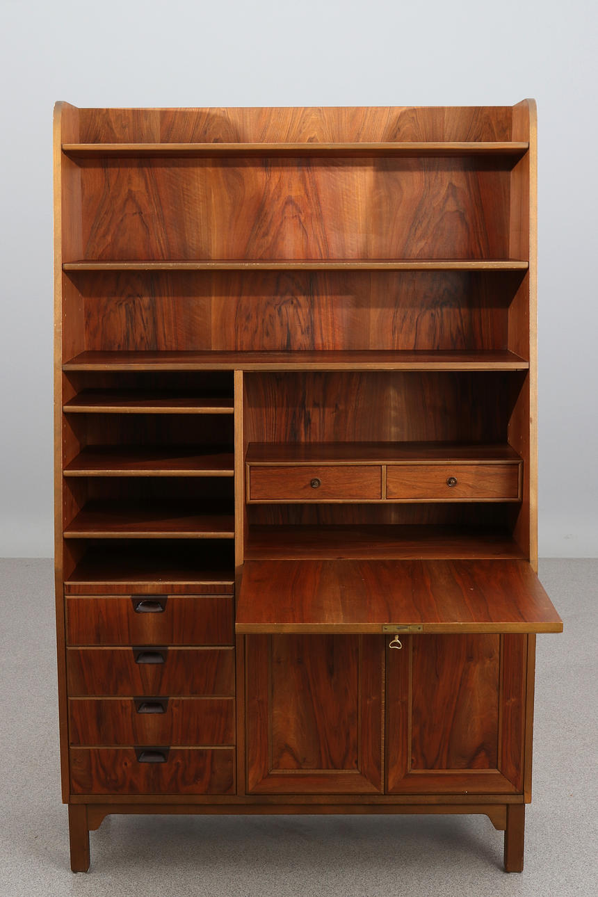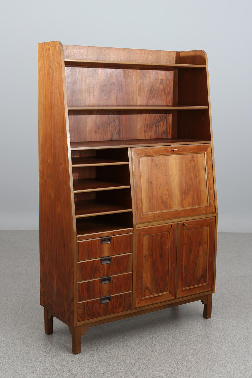 4334506. BOOKCASE WITH WRITING INTERIOR. Walnut. 1960s. It's unmarked.