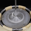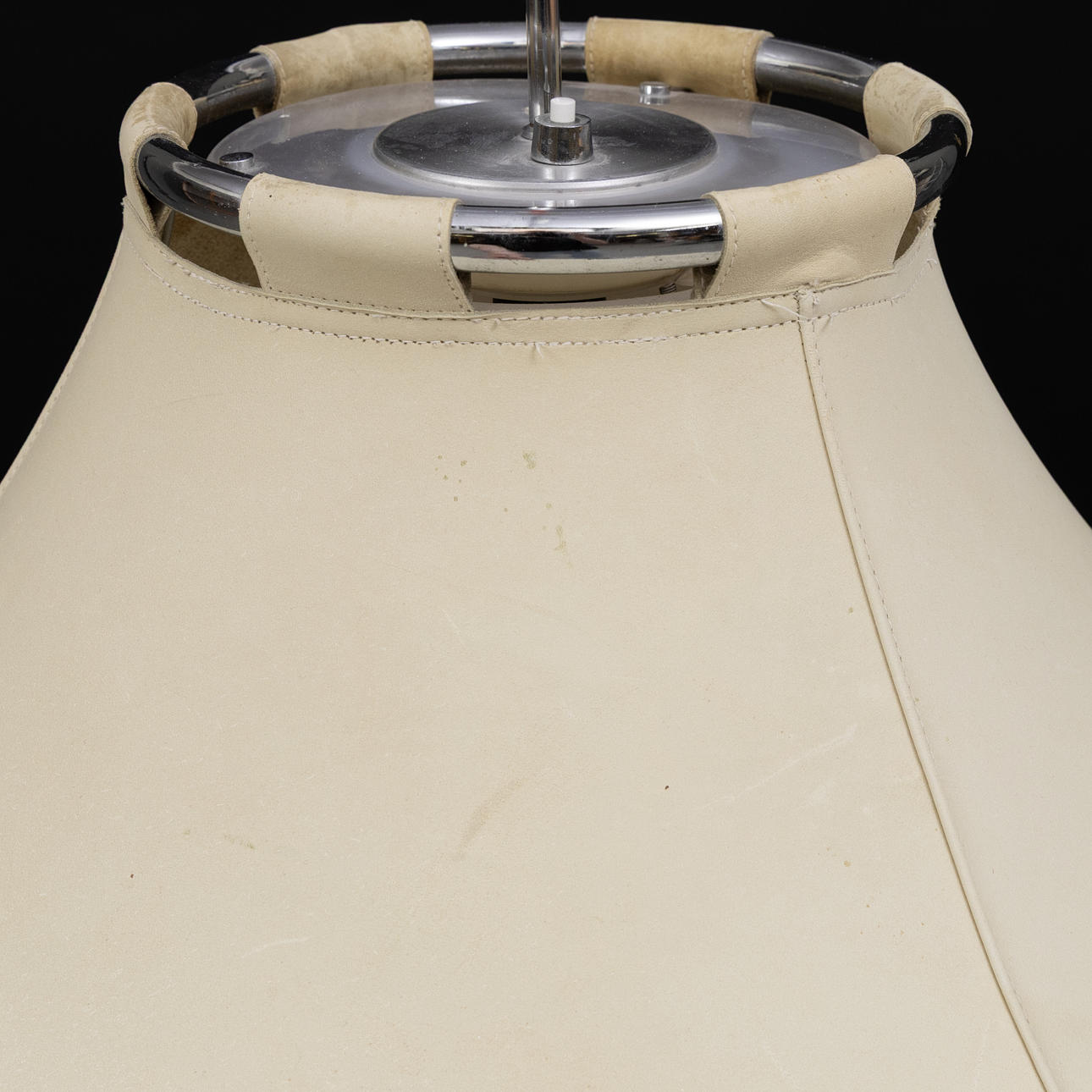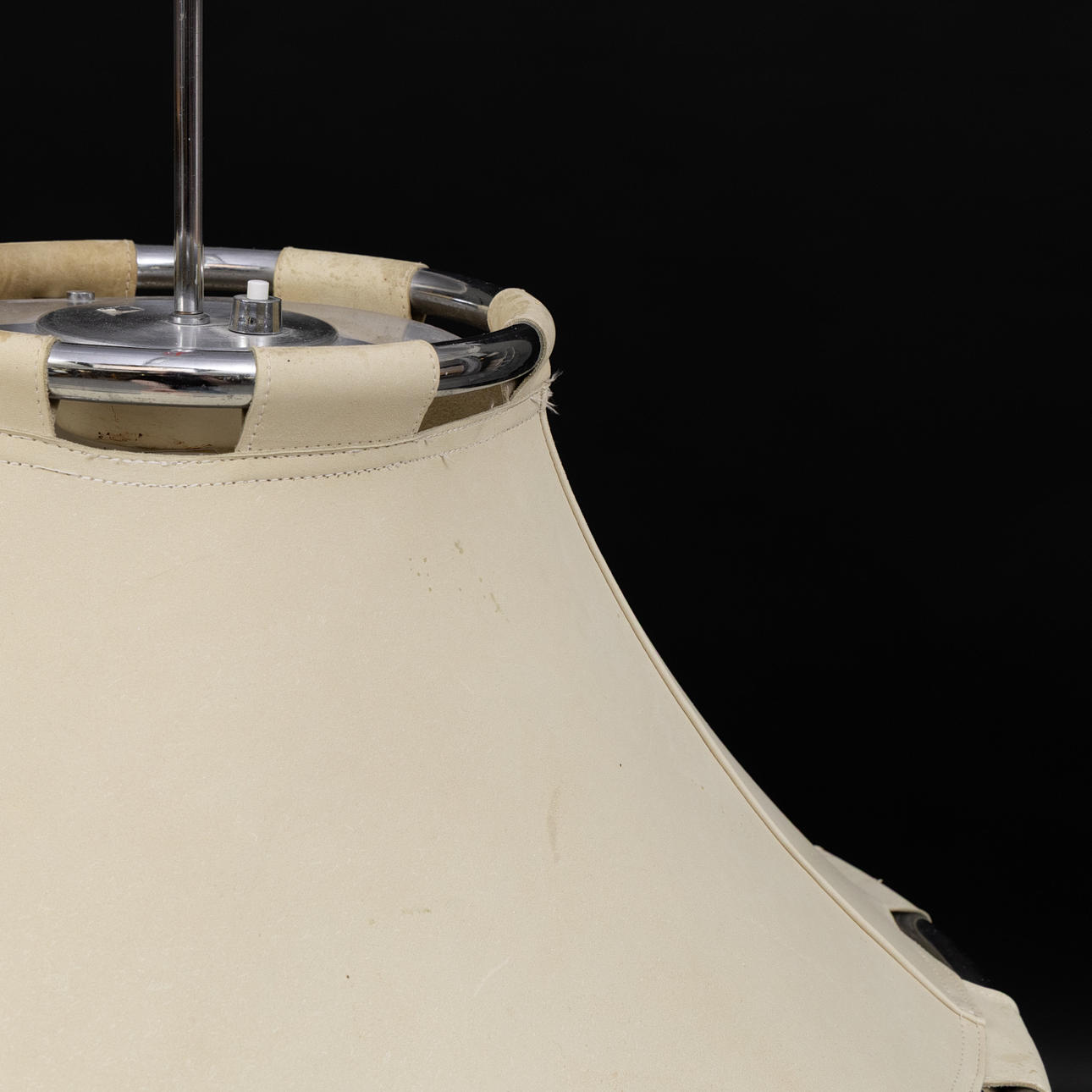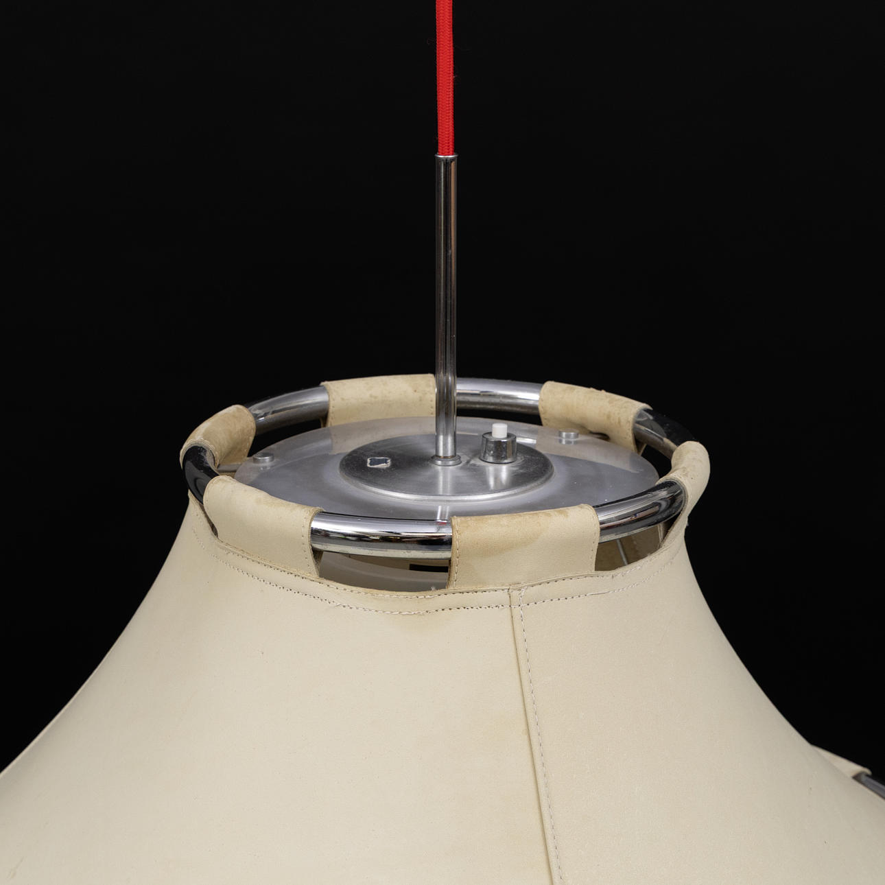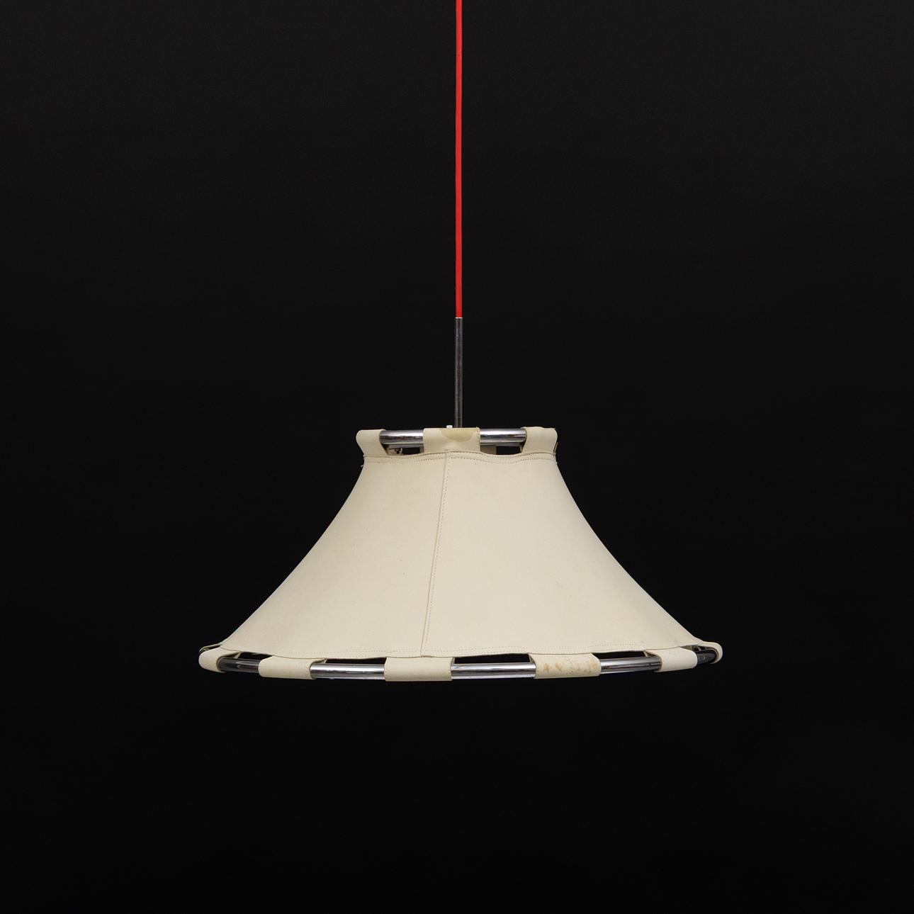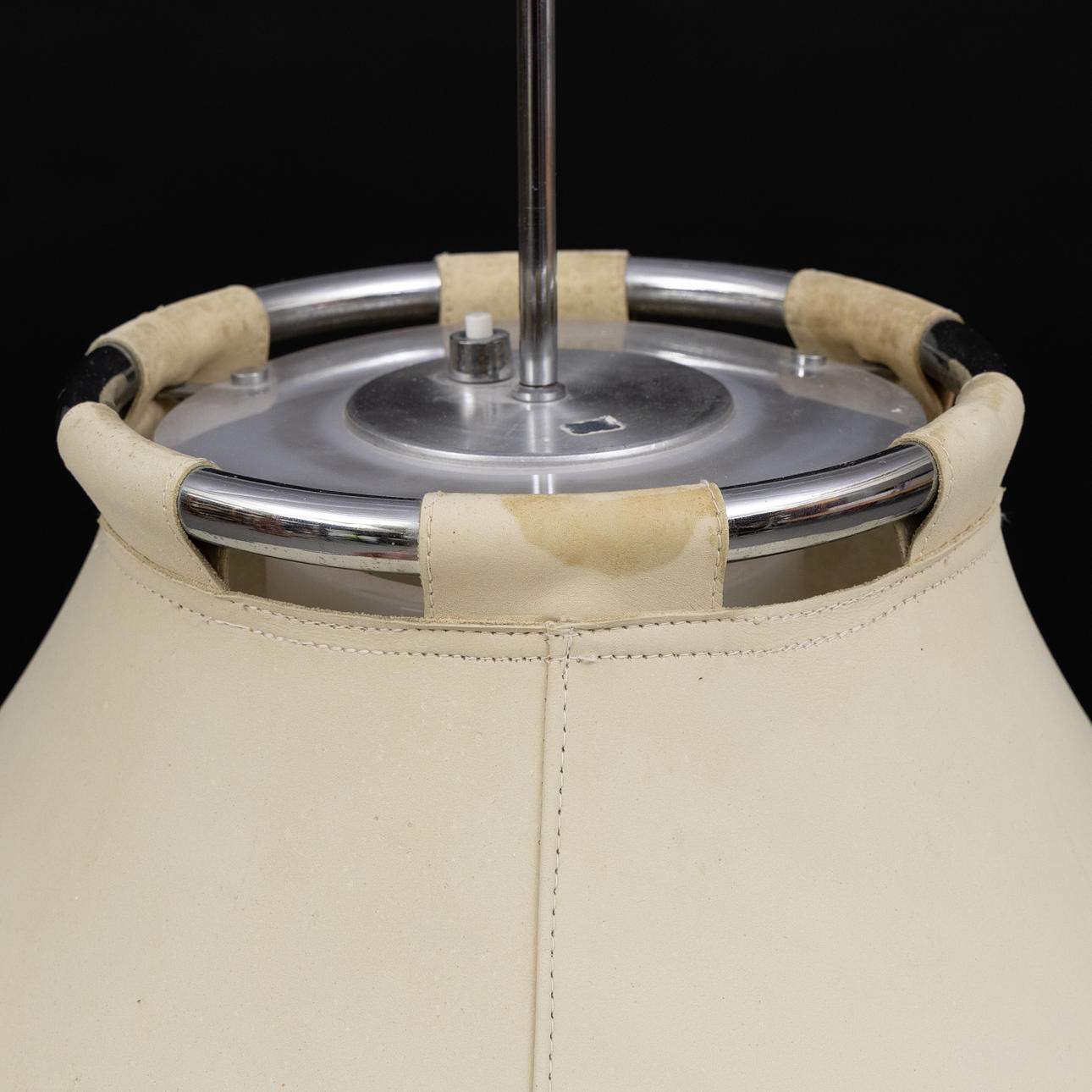 Ceiling lamp from the series Anna, screen upholstered in light leather.