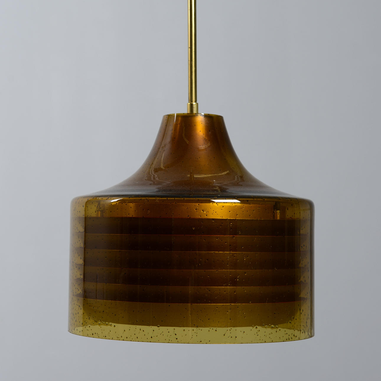 Frame made of brass, cup of tinted glass. Height, excluding cord, 26 cm, diameter 27 cm.
