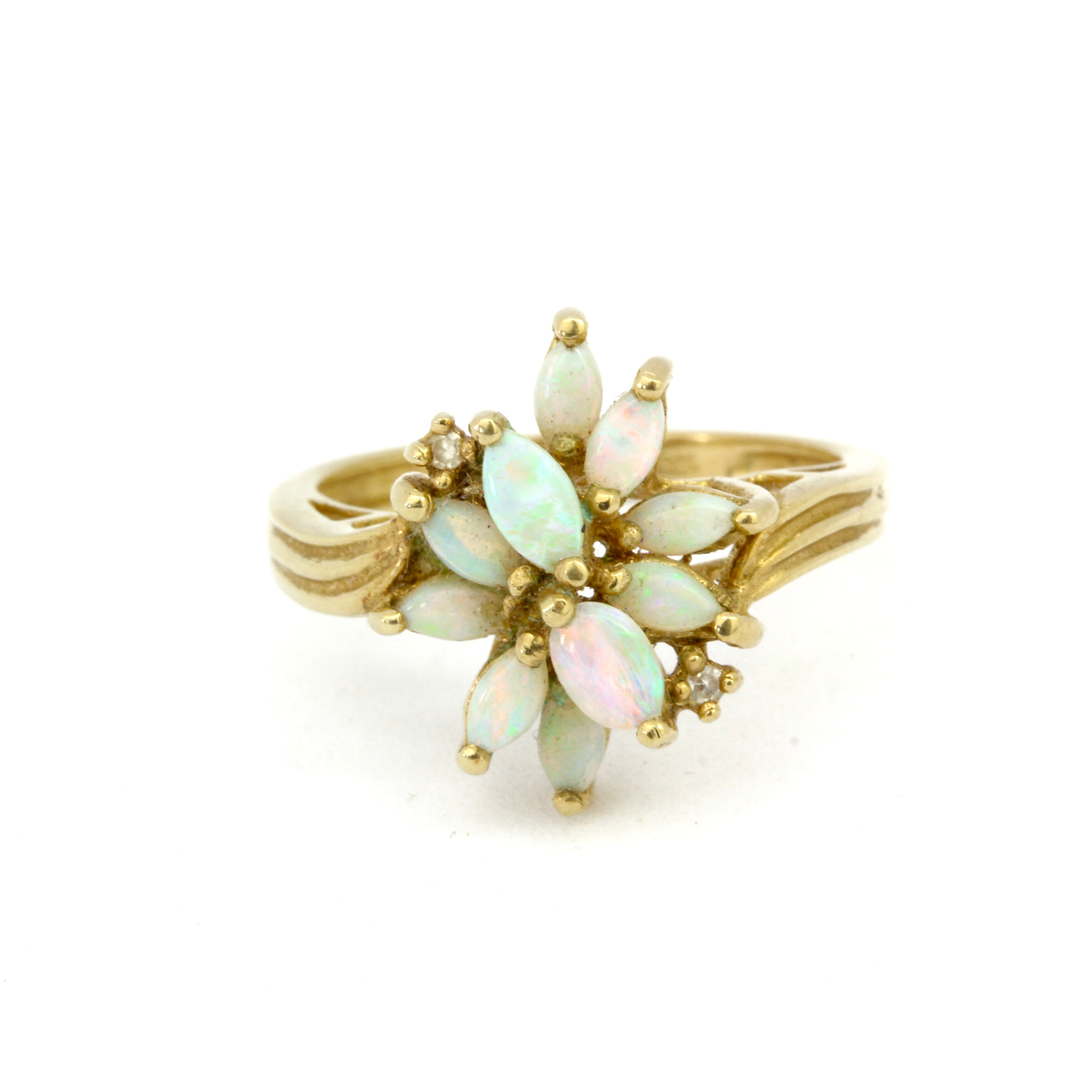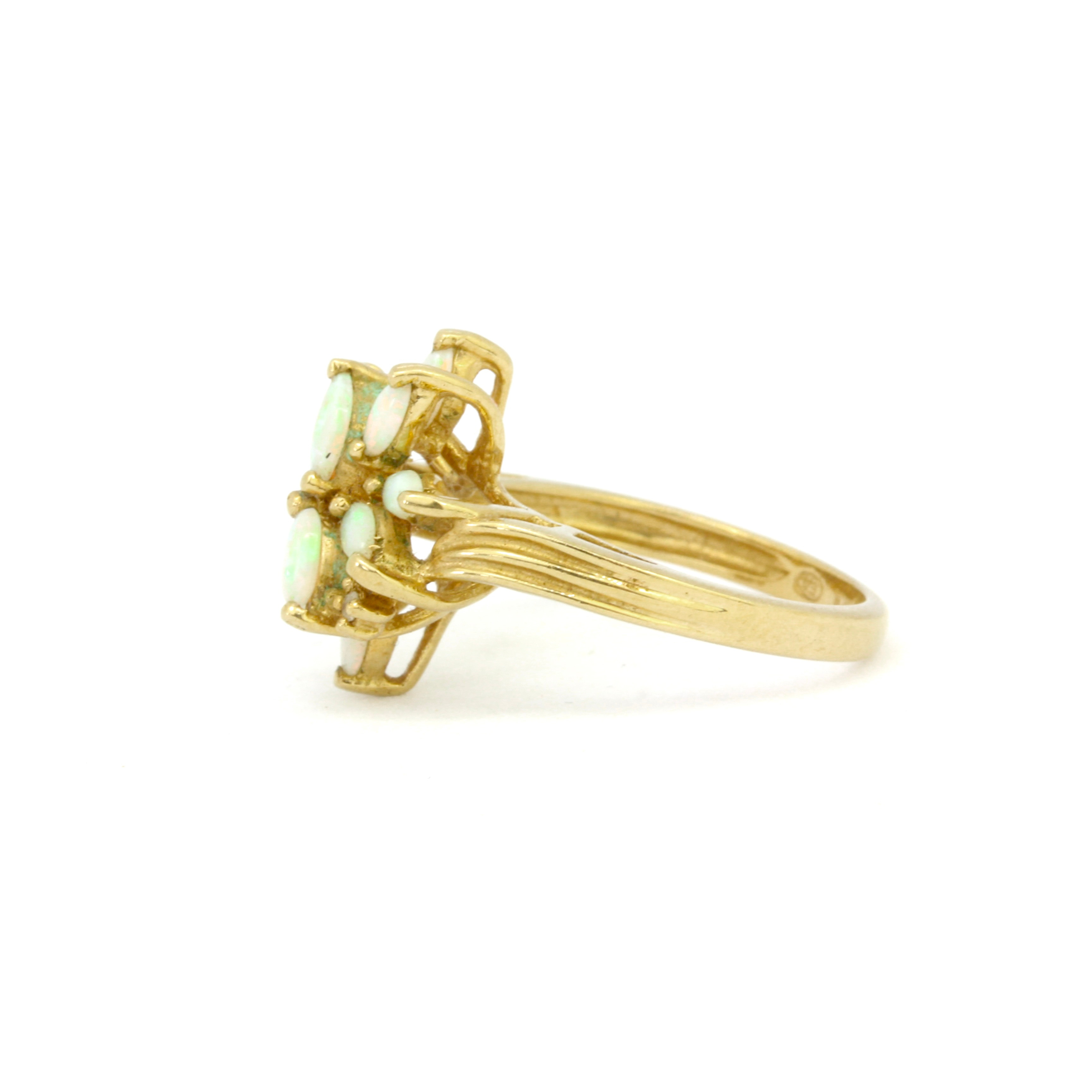 4335127. 9CT YELLOW GOLD OPAL SET CLUSTER RING.