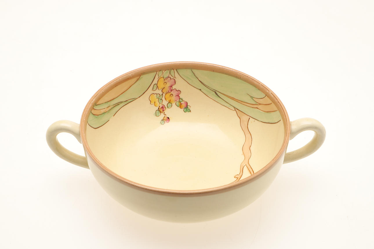 Various items including a two handled cup and saucer in the Chippendale design (saucer 15cms diameter), and a large plate and small plate in the Honeydew design (25cms and 16cms diameter).