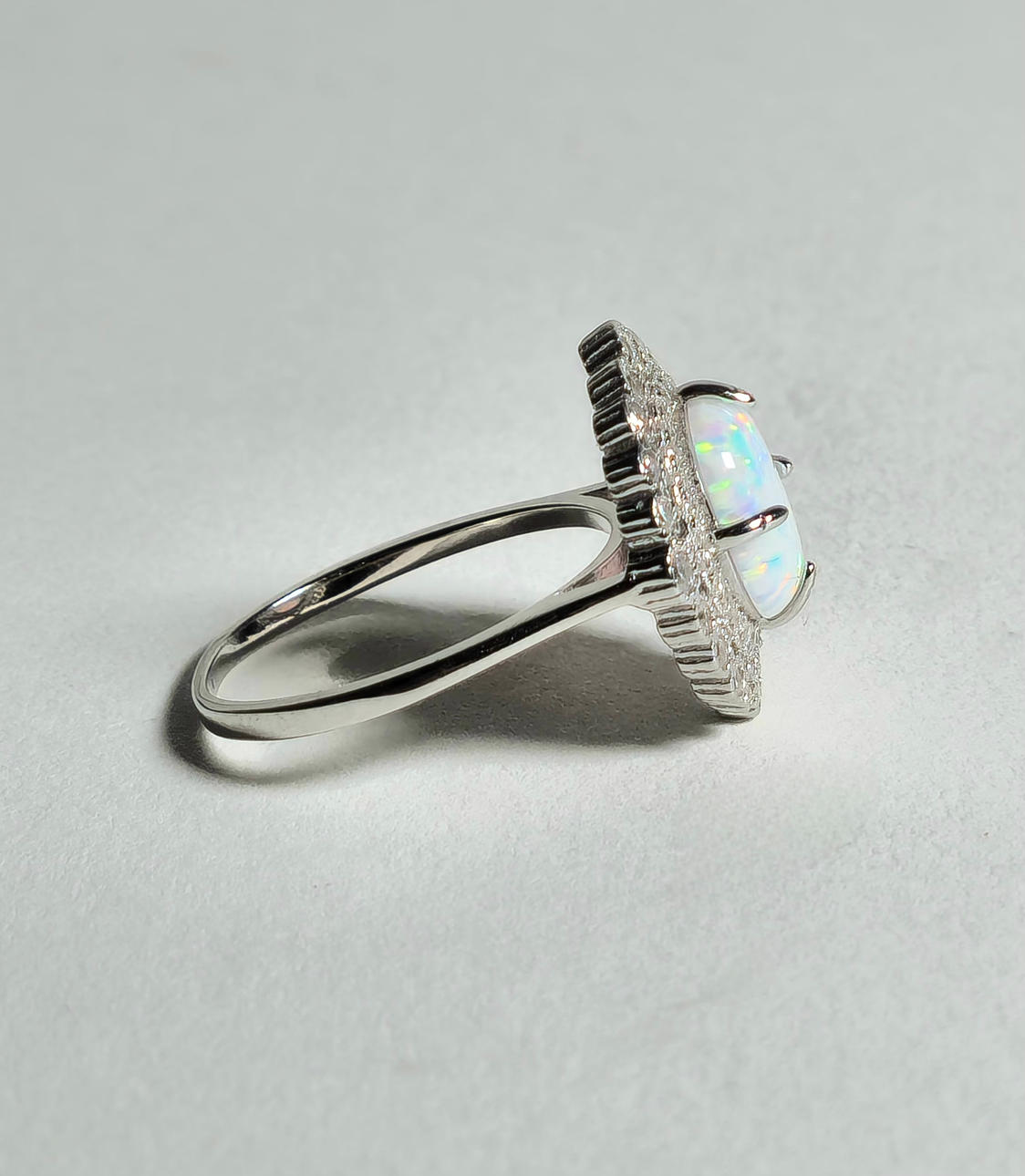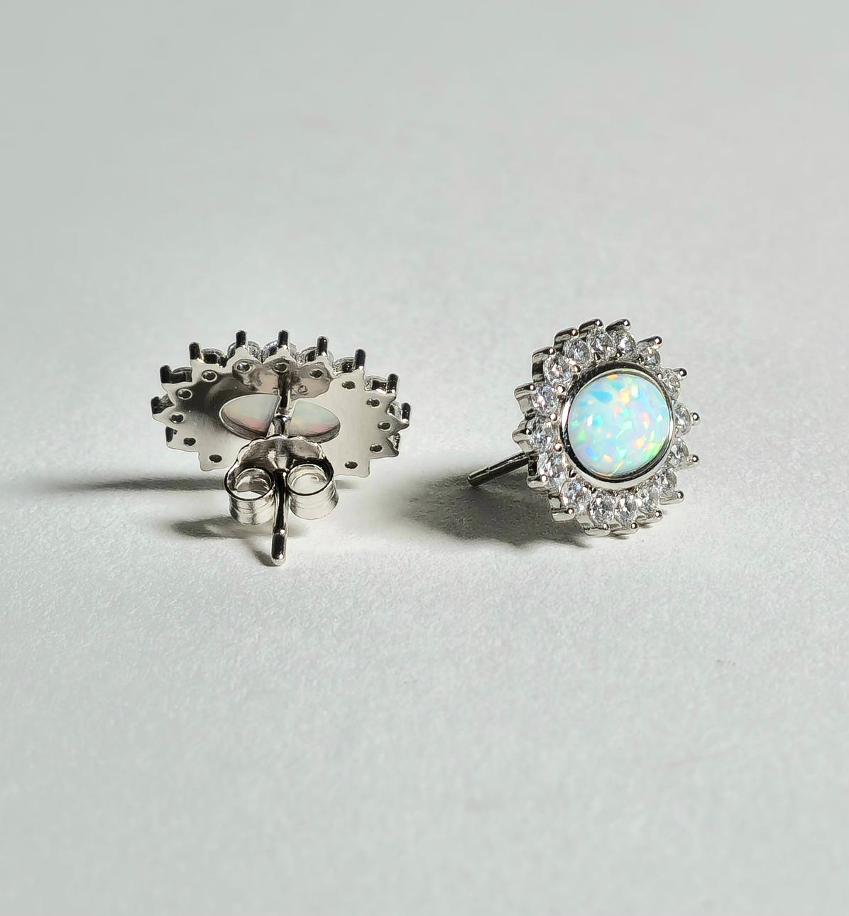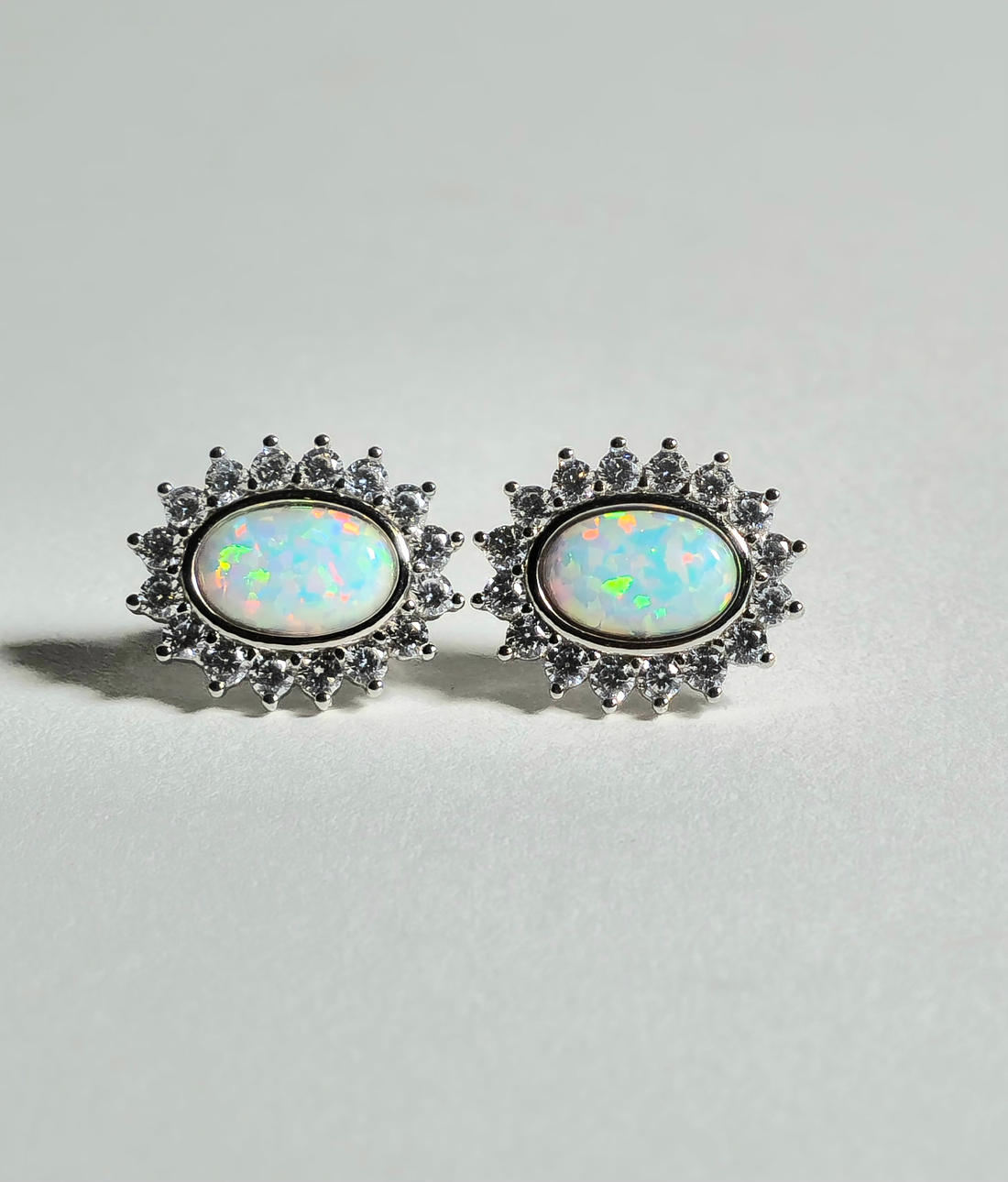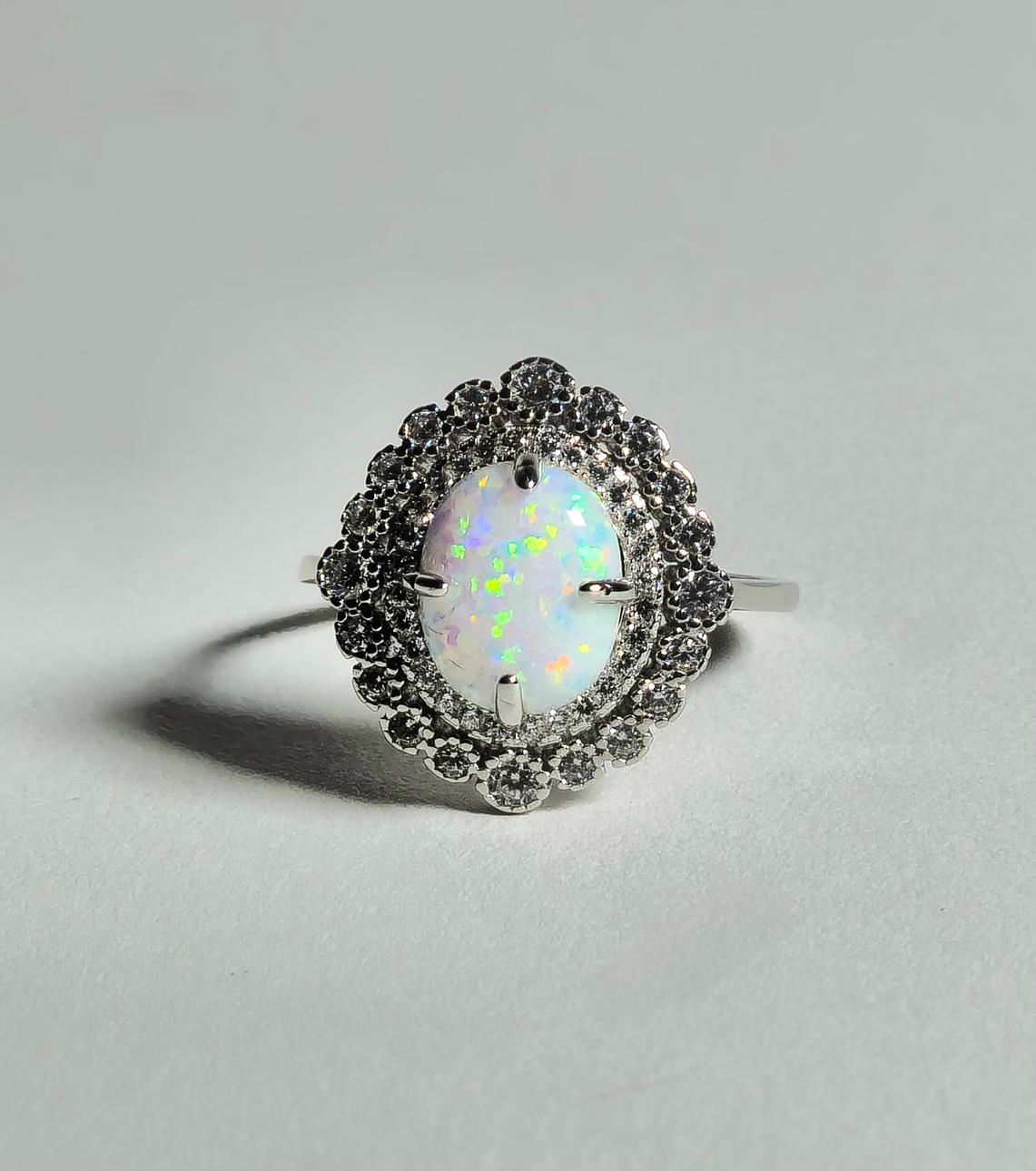 SILVER RING AND EARRINGS WITH ETHIOPIAN OPAL AND ZIRCONS.