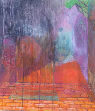 RONNY TEGNESKOG. Composition with cat, mixed media, signed R. Tegnesskog 2003.