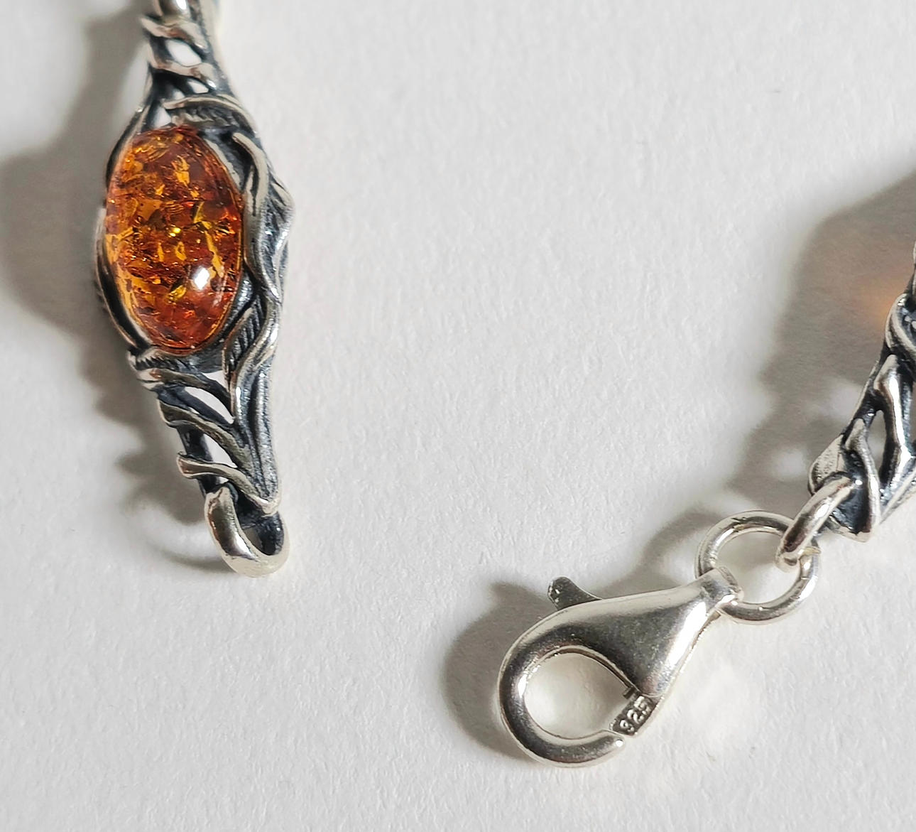 SILVER BRACELET WITH NATURAL AMBER.