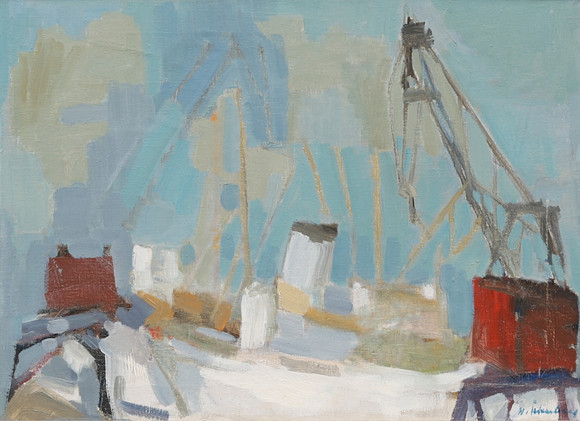 4336460. OIDENTIFIERAD KONSTNÄR. Port motif, mixed media, indistinctly signed.