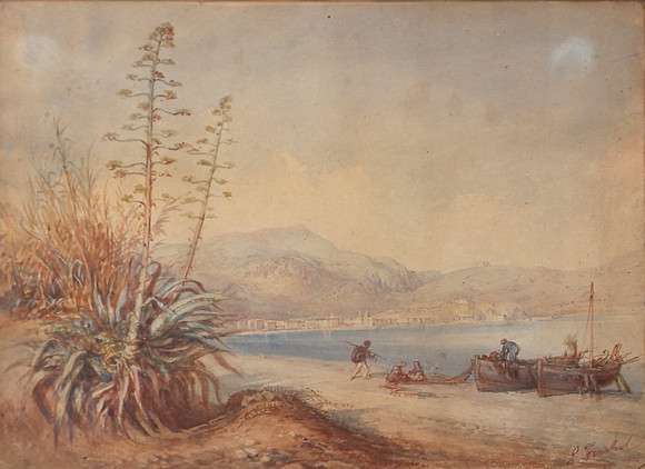 OIDENTIFIERAD KONSTNÄR. Port motif, mixed media, indistinctly signed.