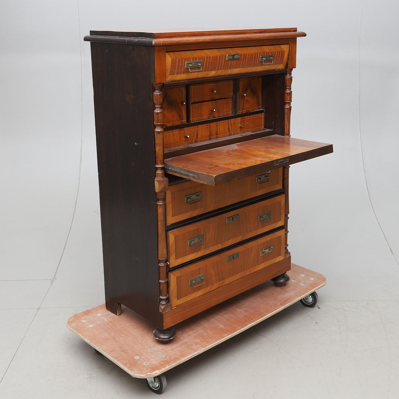 Fold-down desk with drawer interior on the back. Length ca 87, width 46, height 127 cm.