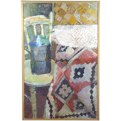 4337281. GÖSTA FALCK. Oil on canvas, Composition with two figures in colorful, abstract landscape signed Falck.