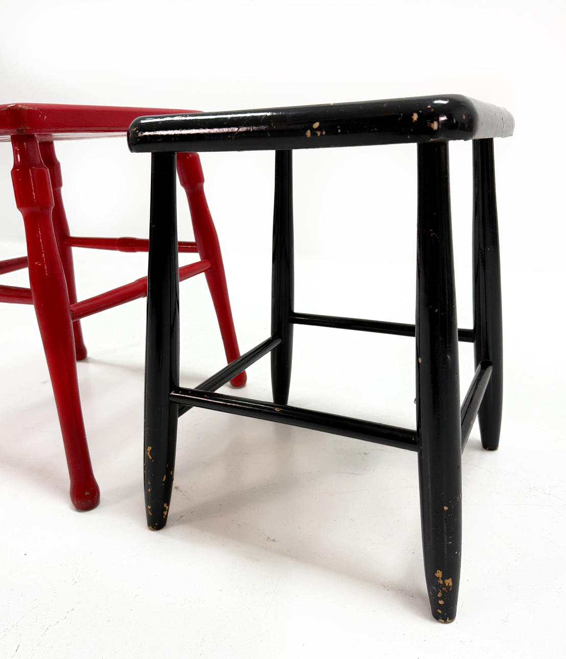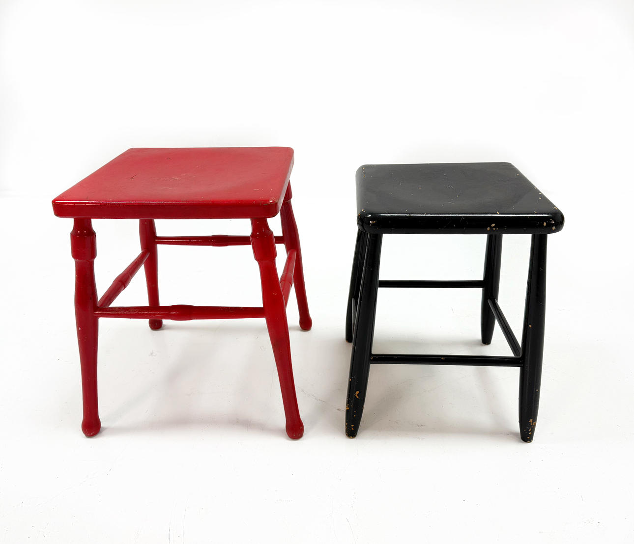 Classic Nordic form Red stool Height 46cm 38x38cm Black stool Height 44cm 32x32cm.