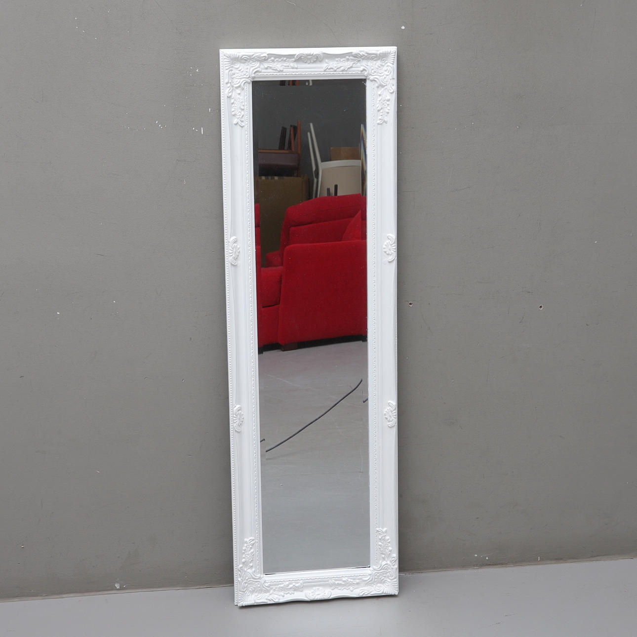 Painted wood/plaster. Approx. 131x40 cm.
