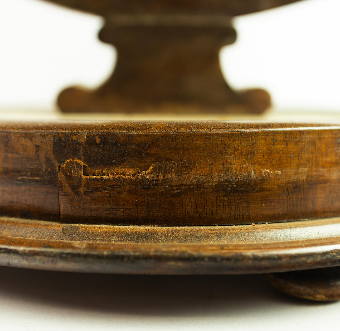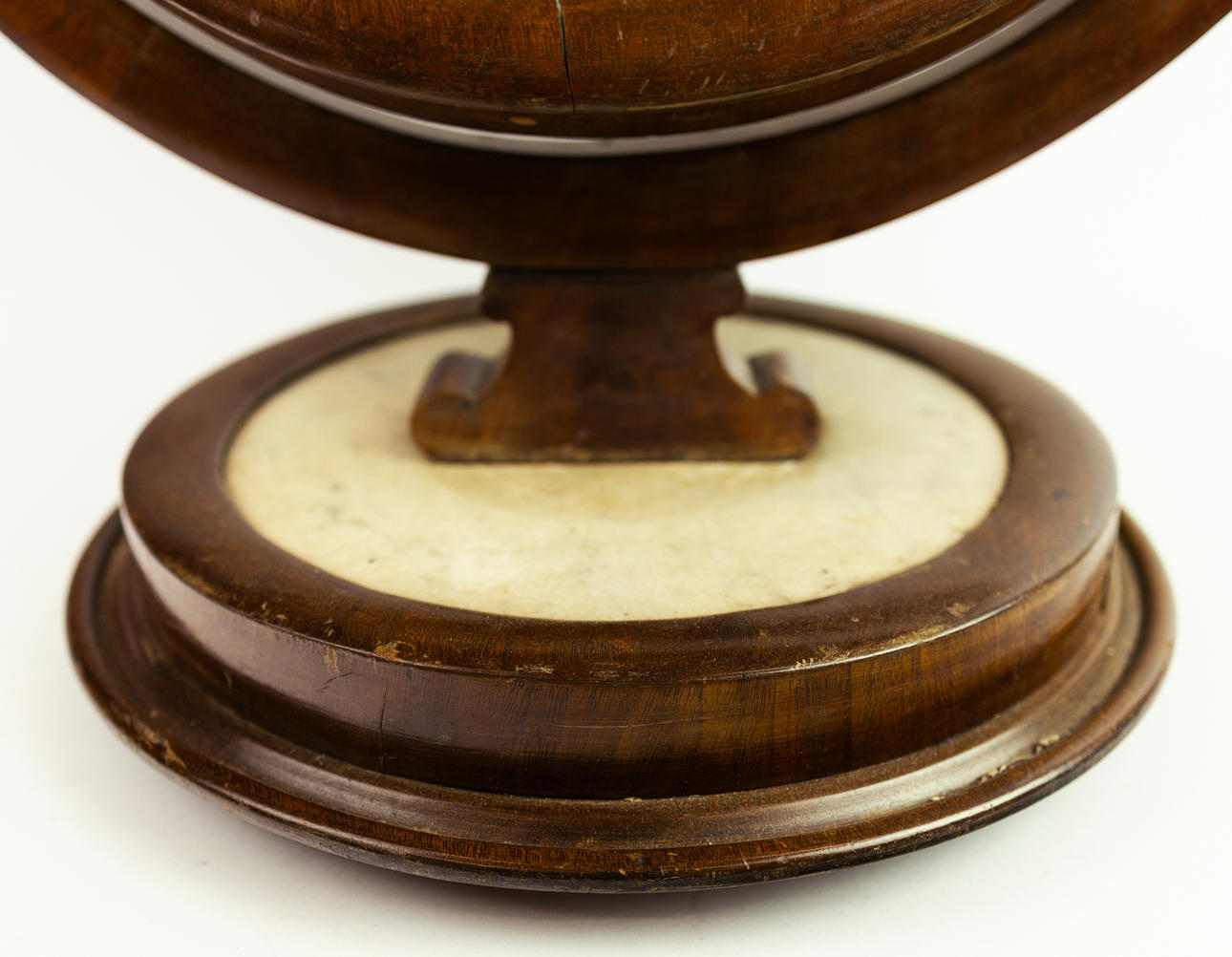 mahogany with circular swing plate and marble base, 59cm H x 59cm W.