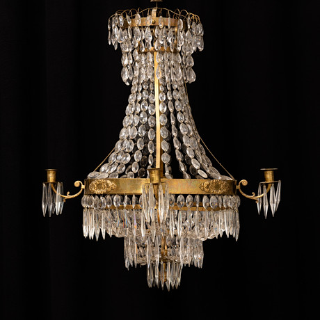 4338006. An emitime-style chandelier from the first half of the 20th century. Height approx. 65 cm.