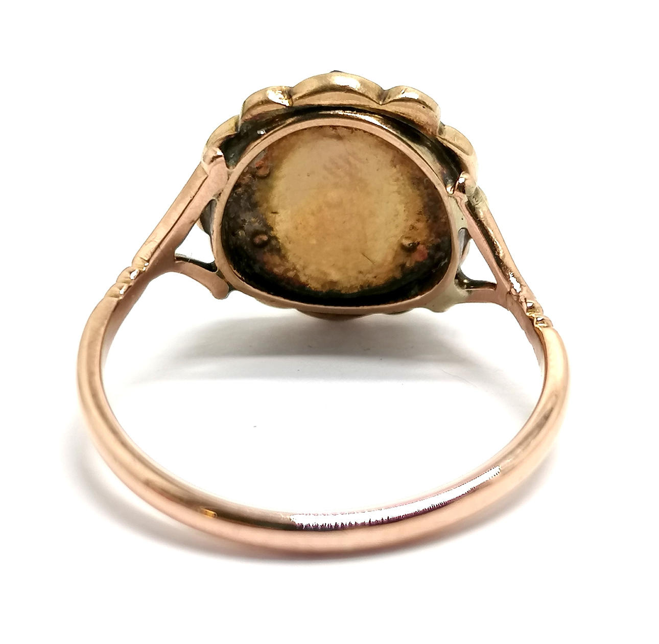 4338175. ANTIQUE 9CT GOLD GARNET CLUSTER RING.