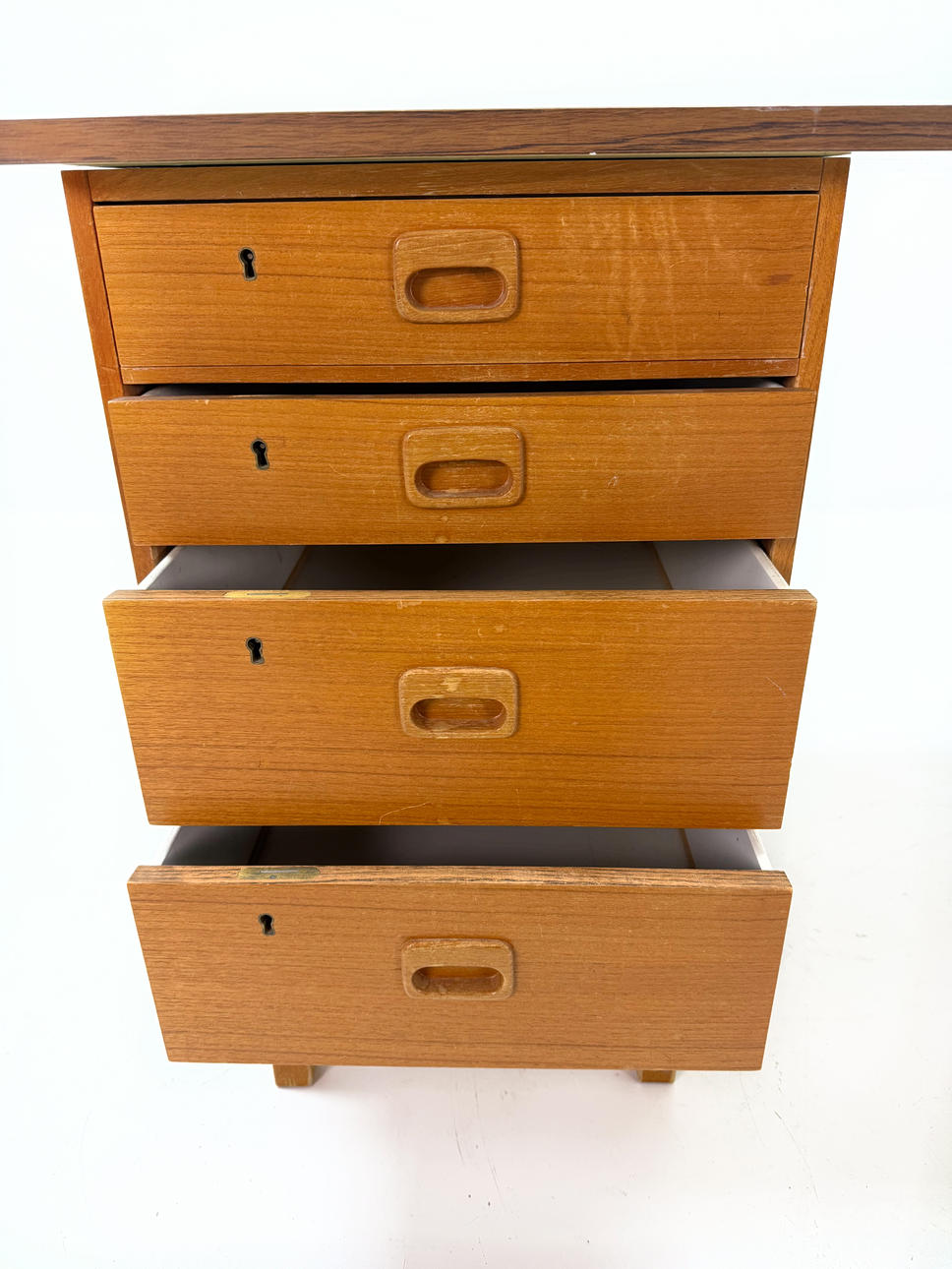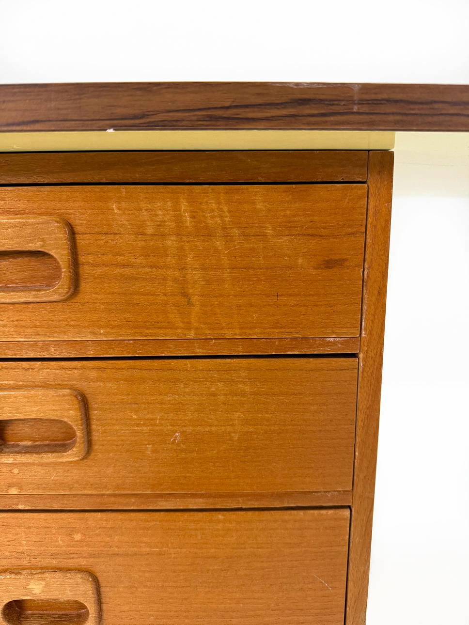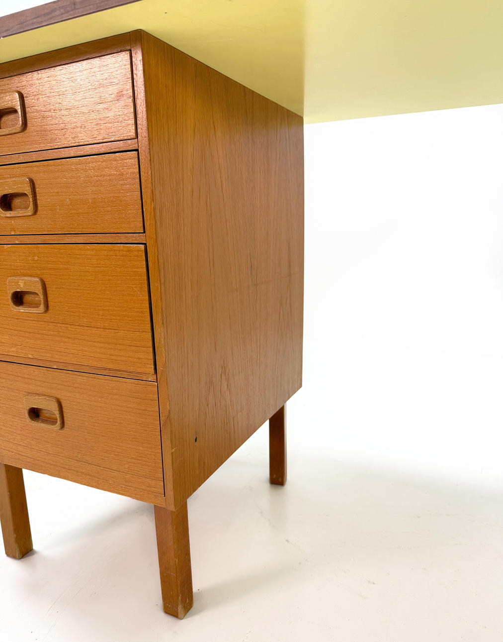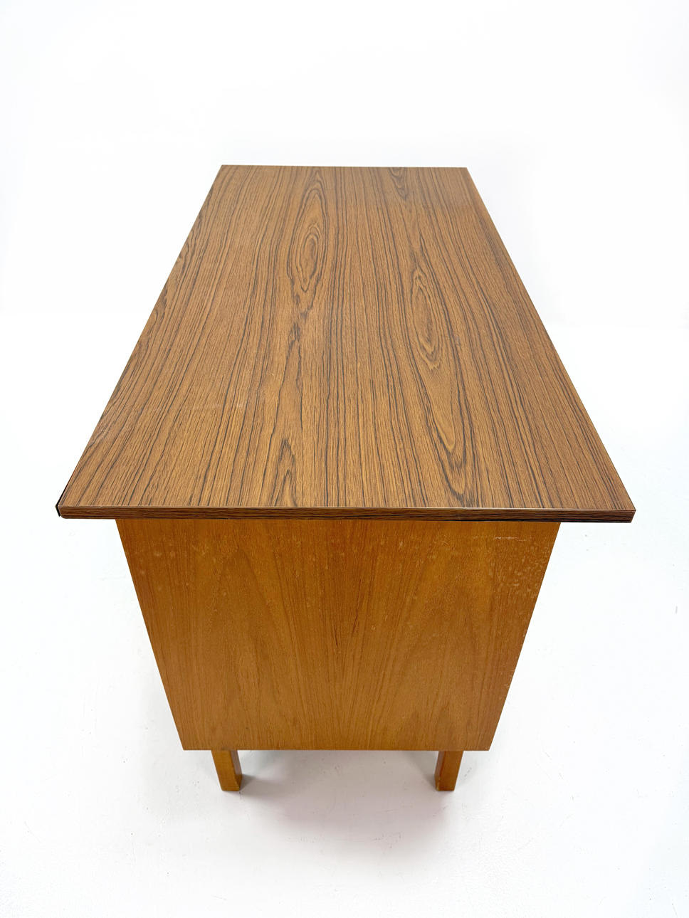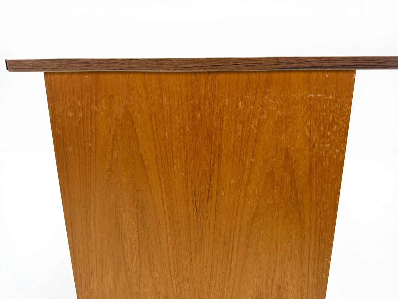 Hurts in teak laminate with recessed handles Height 73cm, width 50cm, depth 58cm Laminate board, length 120cm width 60cm.