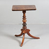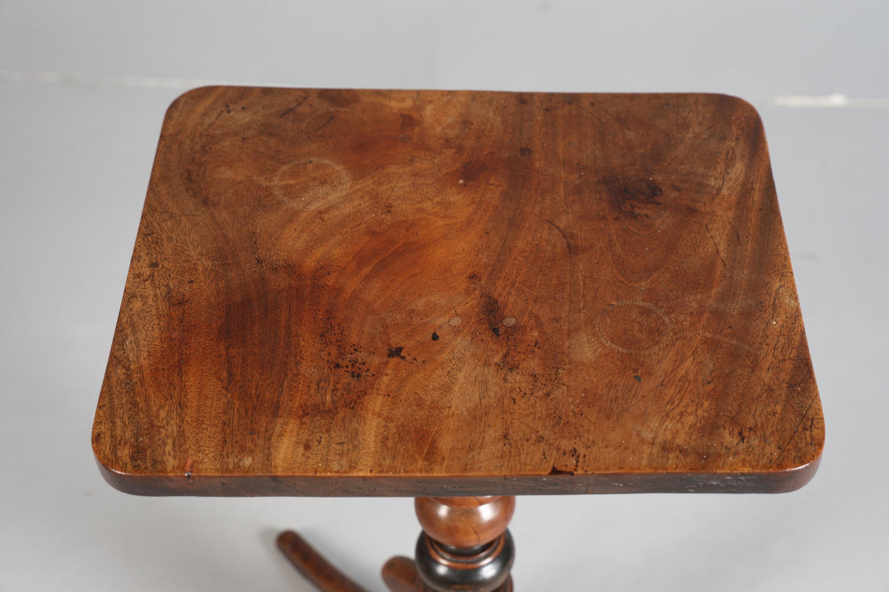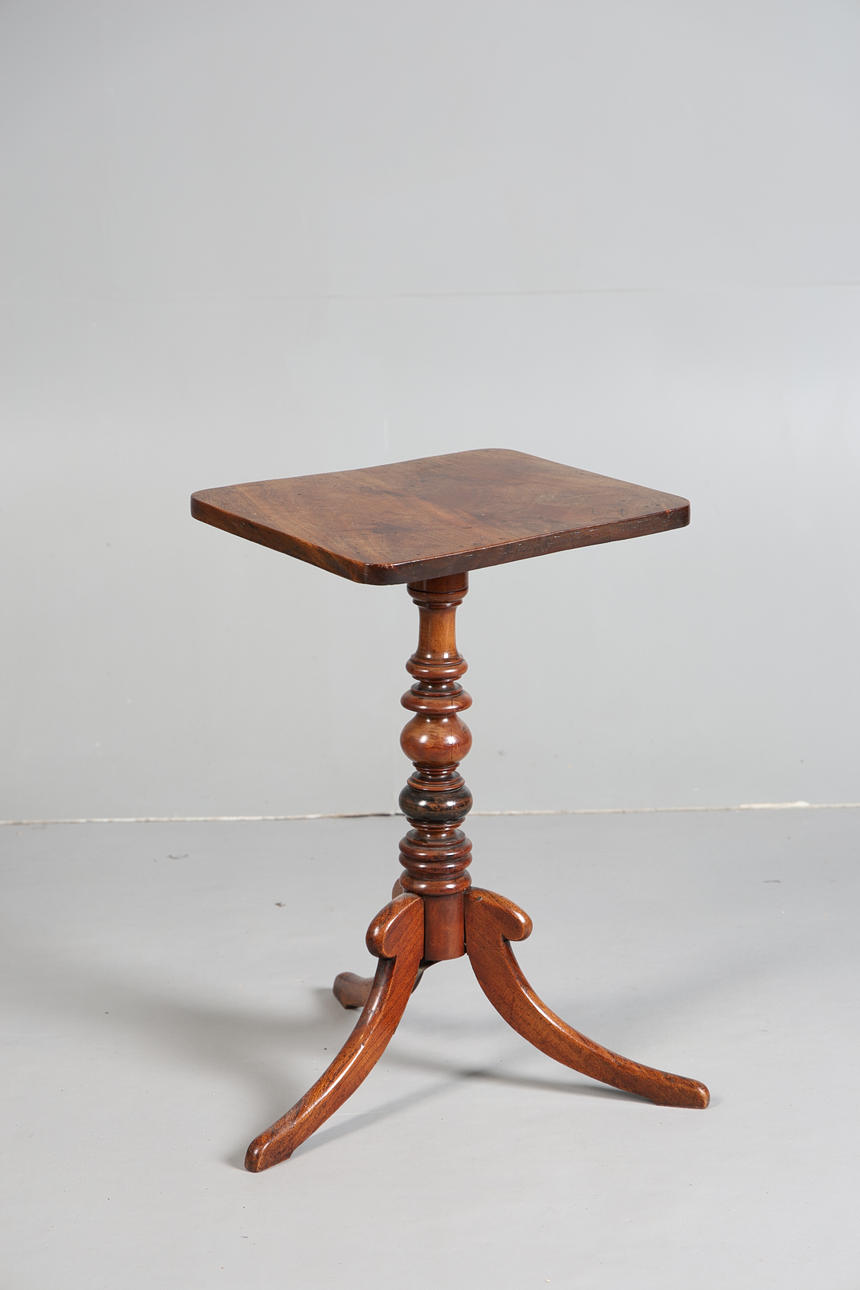 Having a rectangular top with rounded corners above a knopped turned column raised on swept legs, 66cm high 44cm wide 36cm deep.