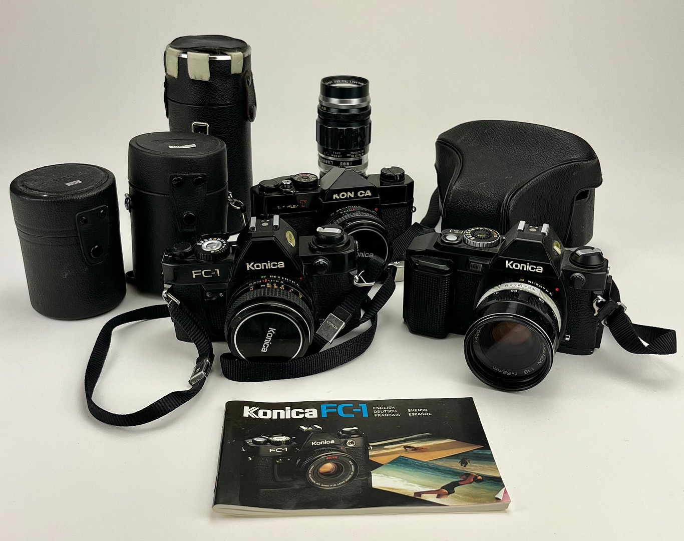 4339461. CAMERAS, 3 pcs, Konica with lens.