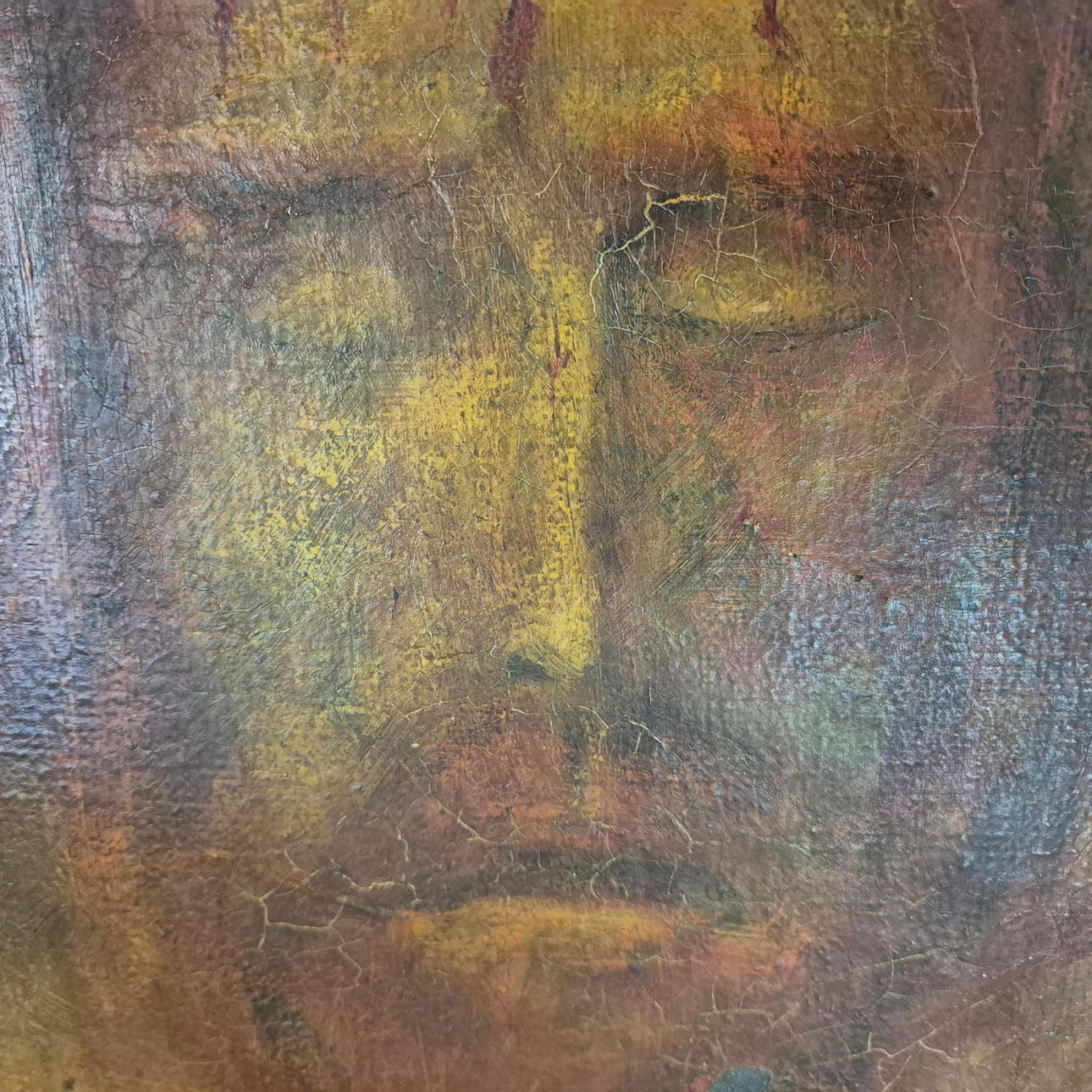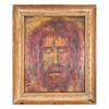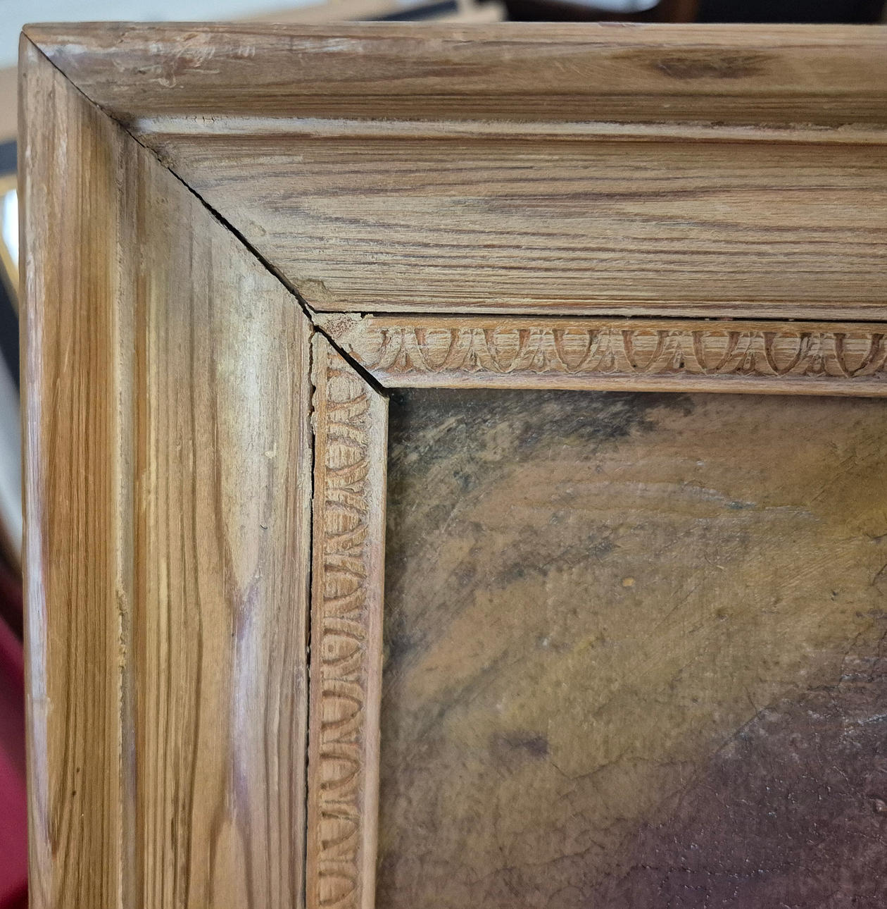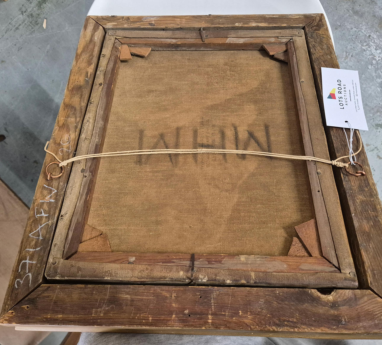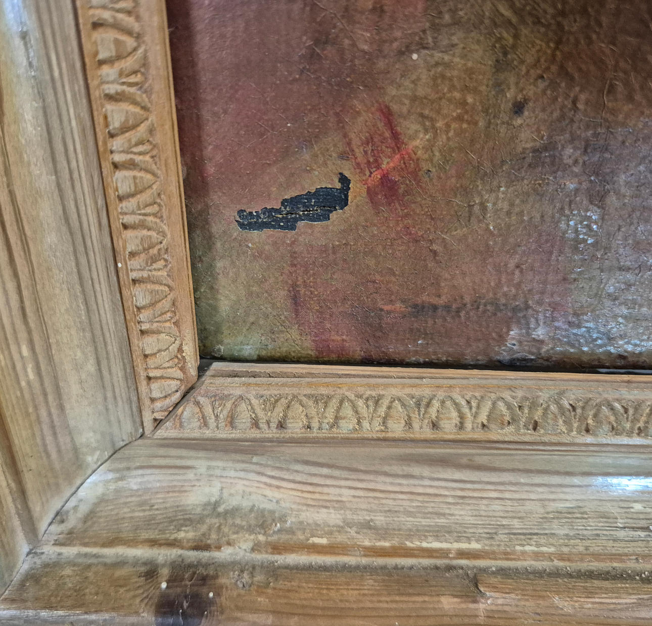 loose in frame, losses to canvas.