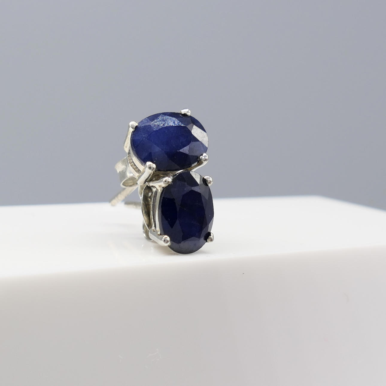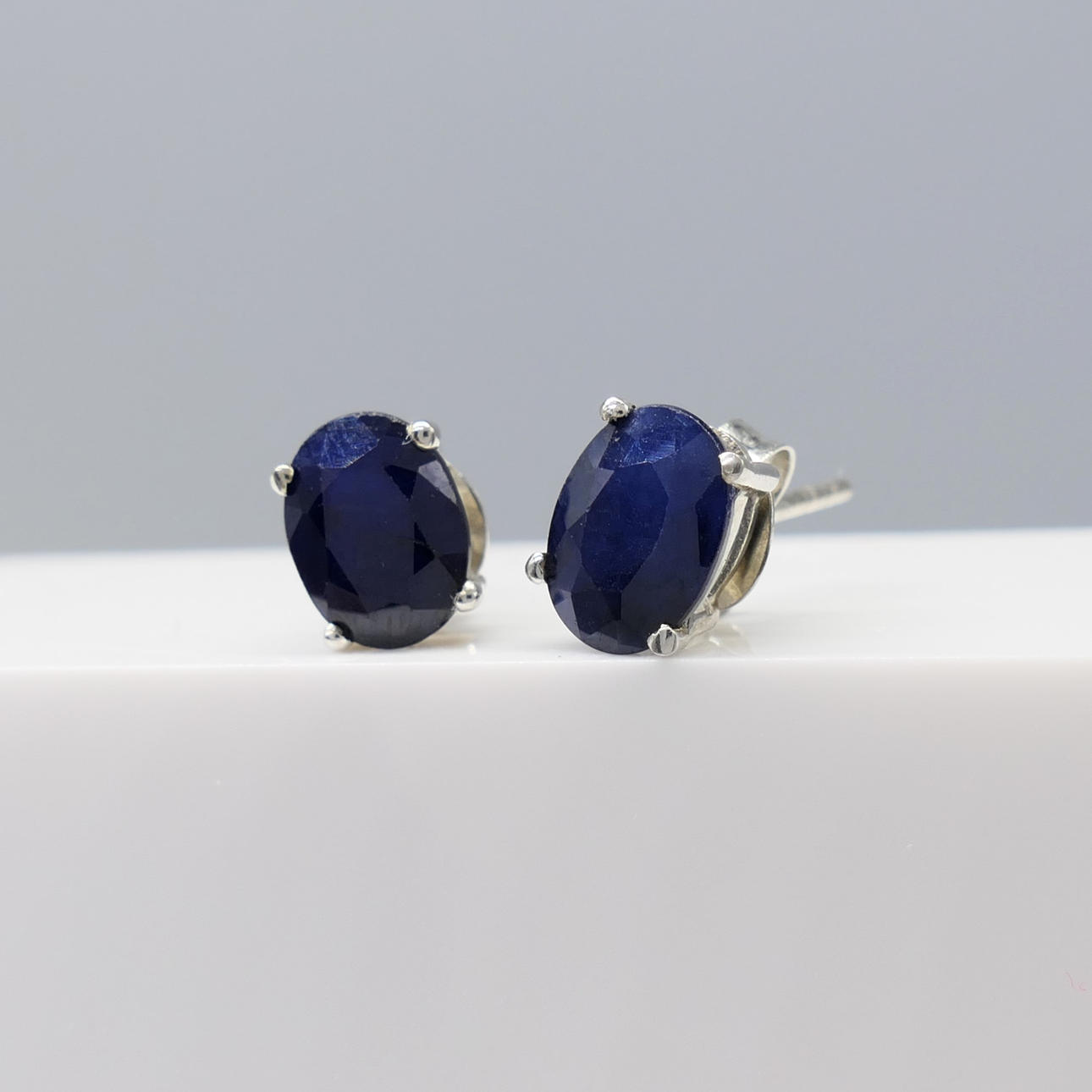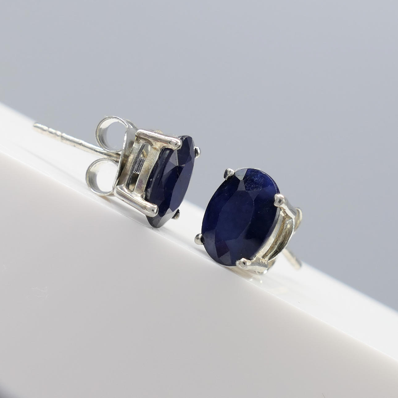Blue sapphire gemstones: natural, treated; 2 x oval-cut; 1.80 carat total approx; 8 x 6mm each